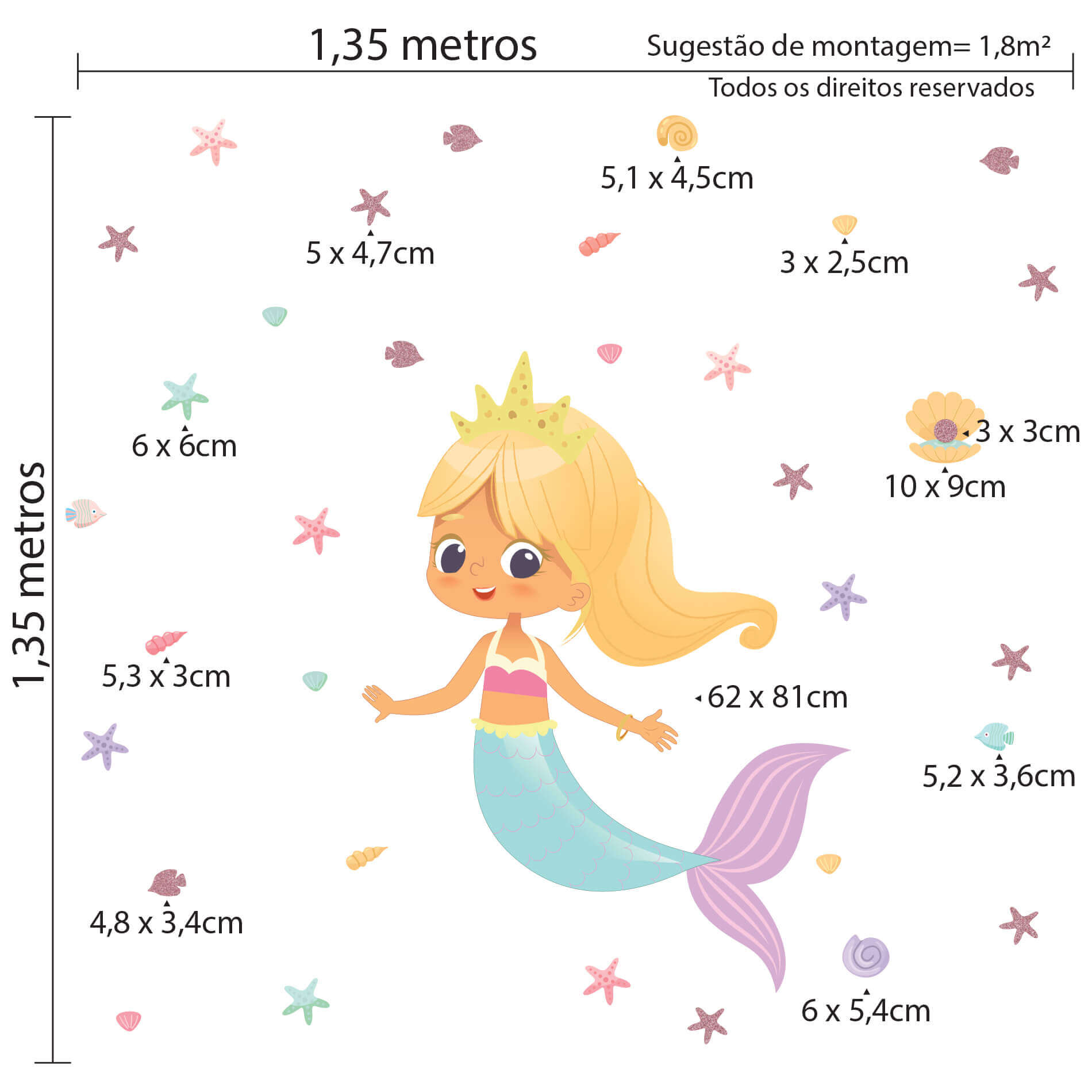 – 1 Adesivo de Parede de Sereia 62x81cm;