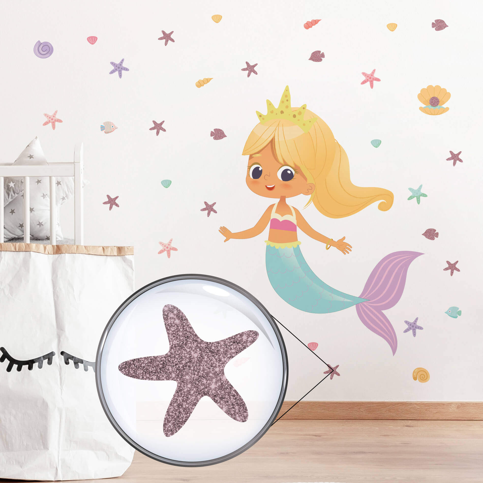 – 1 Adesivo de Parede Concha 10x9cm com Adesivo com glitter de 3cm;
