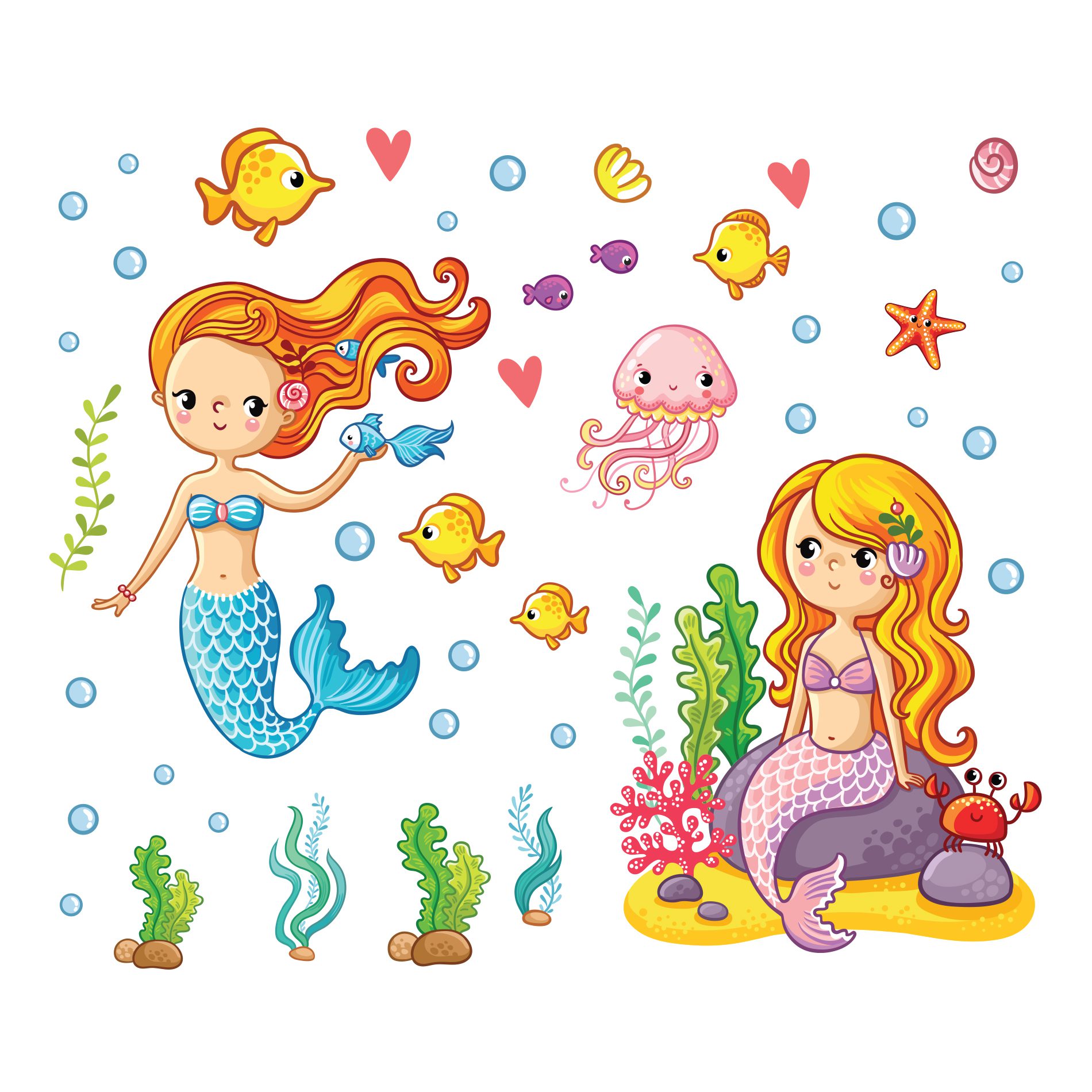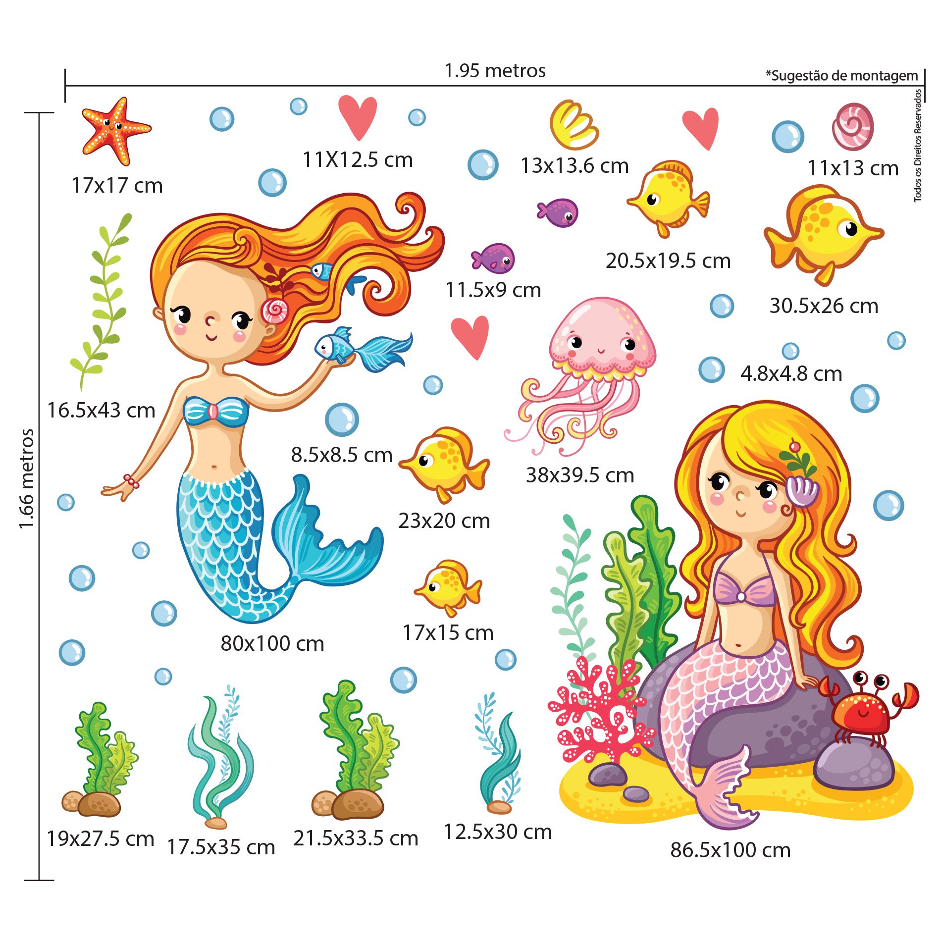 Dimensões: do Adesivo de Parede Sereias Fundo do Mar