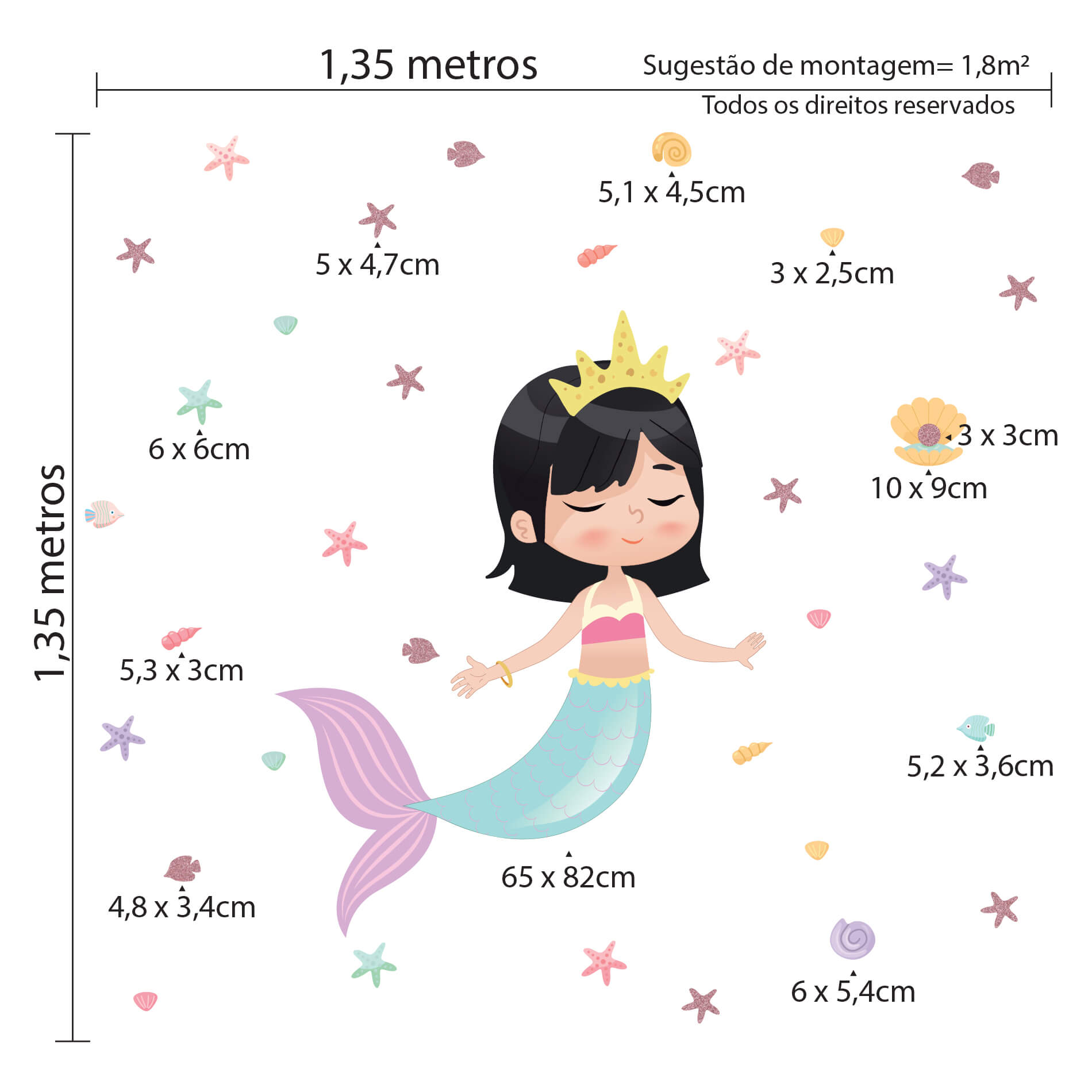 – 1 Adesivo de Parede de Sereia 65x82cm;