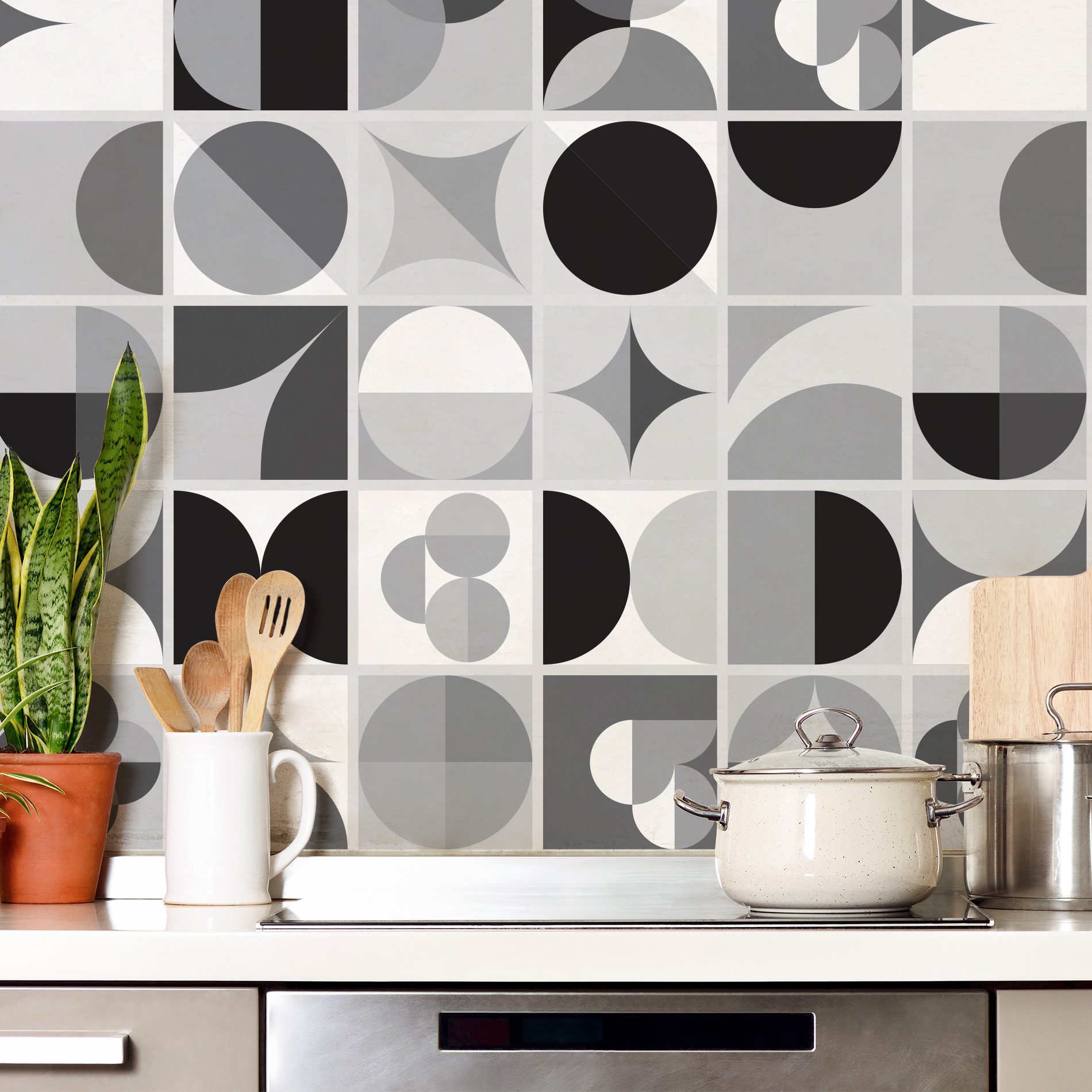 Dimensões e Características do Adesivo Geométrico para Azulejo Preto e Branco