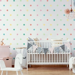Decoração com adesivo infantil bolinhas coloridas tons pastéis