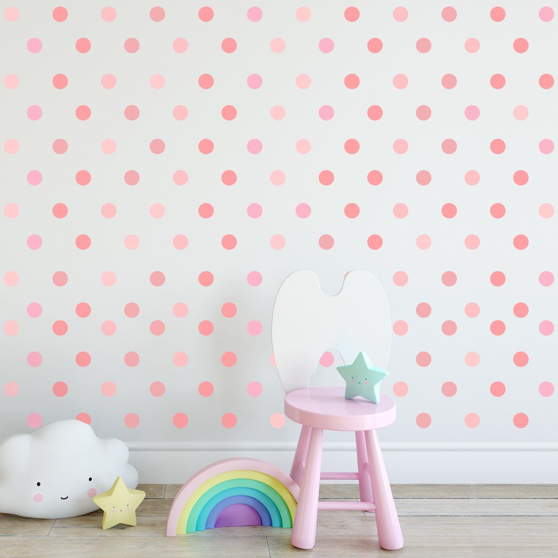 Adesivo de Parede Infantil Bolinhas Tons de Rosa – 132 unidades