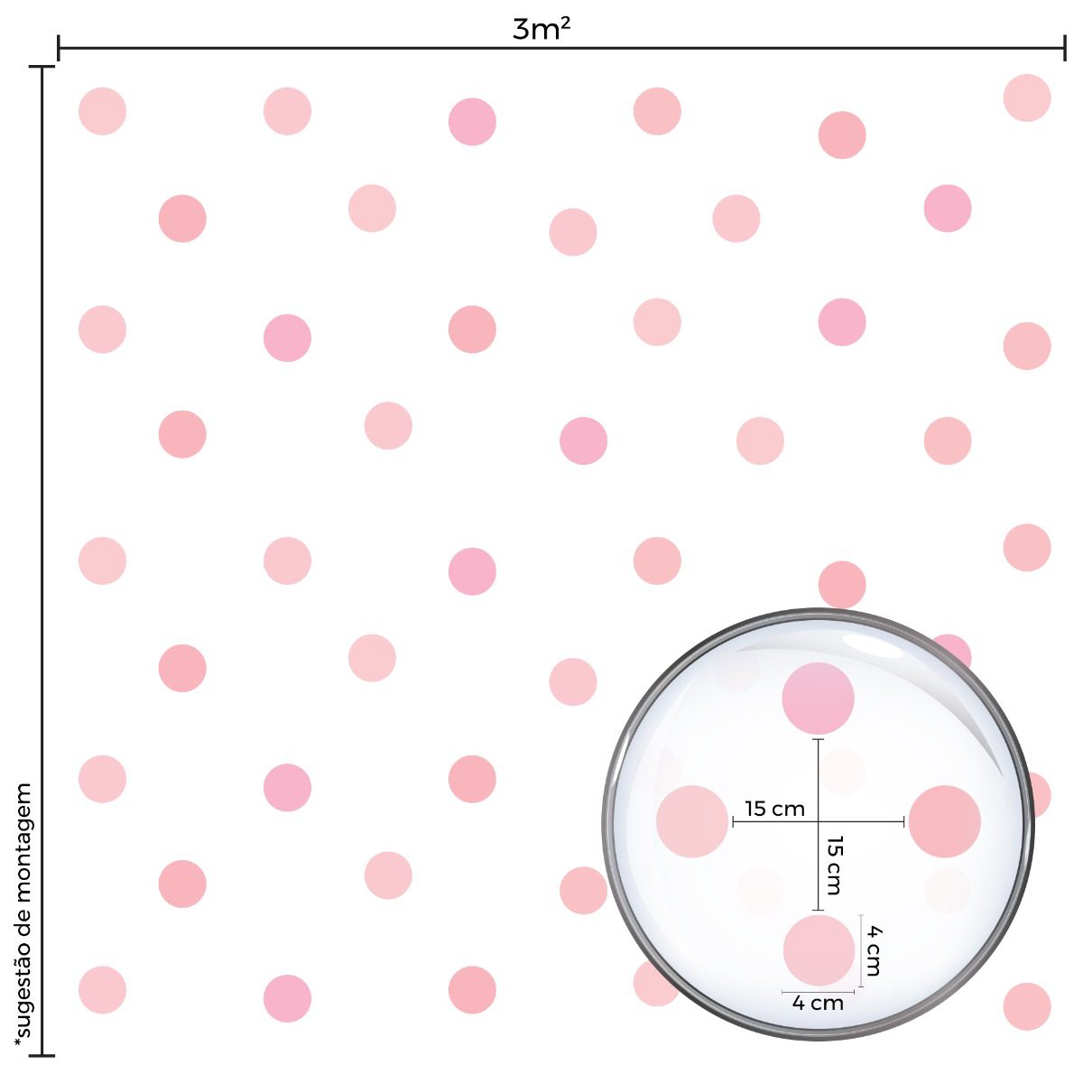 Adesivo de Parede Infantil Bolinhas Tons de Rosa – 144 unidades