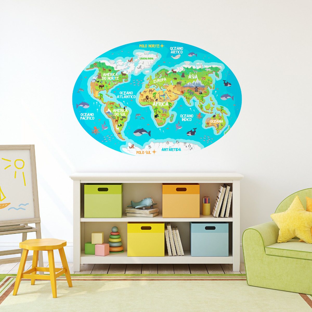 Adesivo de Parede Mapa Mundi Para Quarto de Criança
