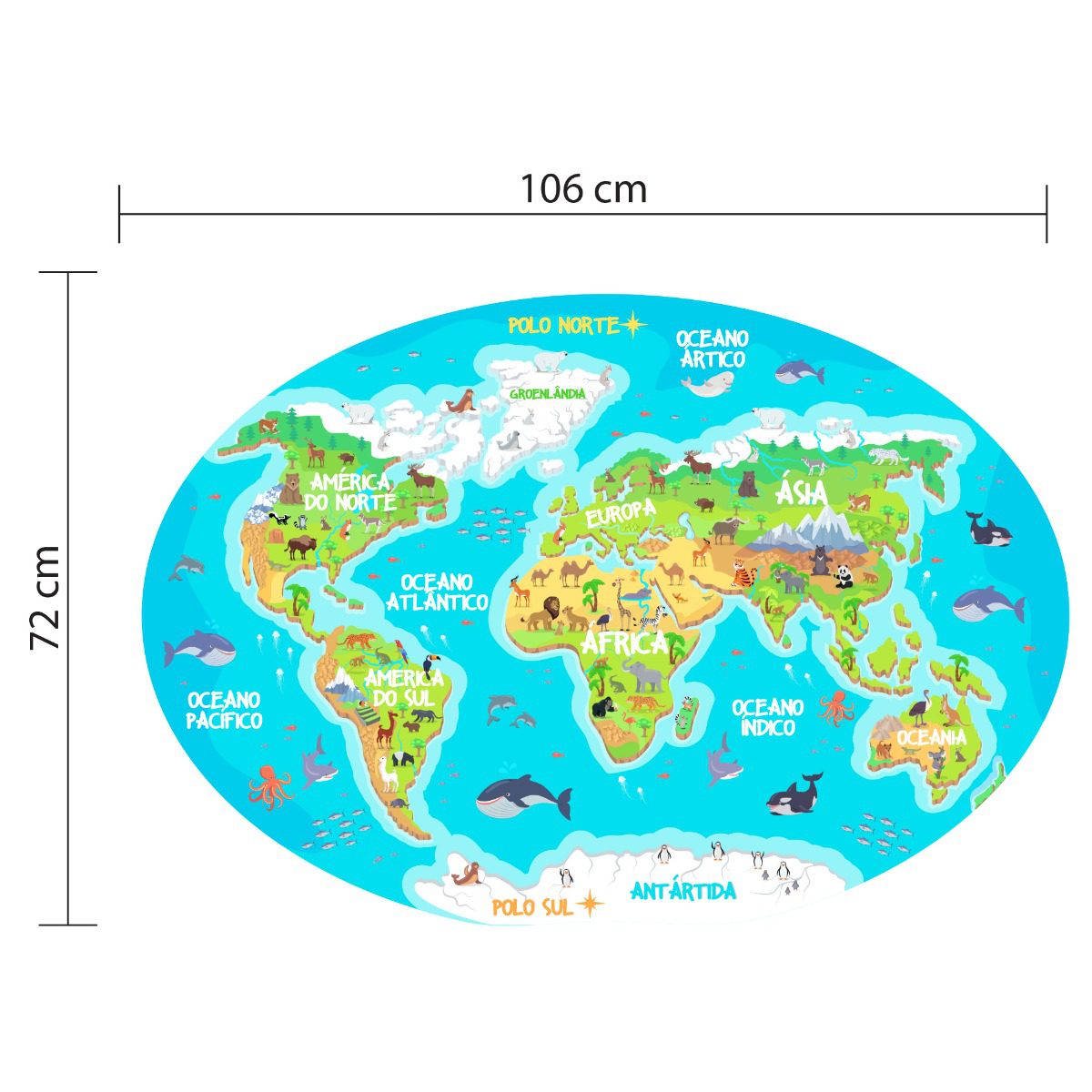 Dimensões e Características do Adesivo Mapa Mundi Infantil para Quarto: