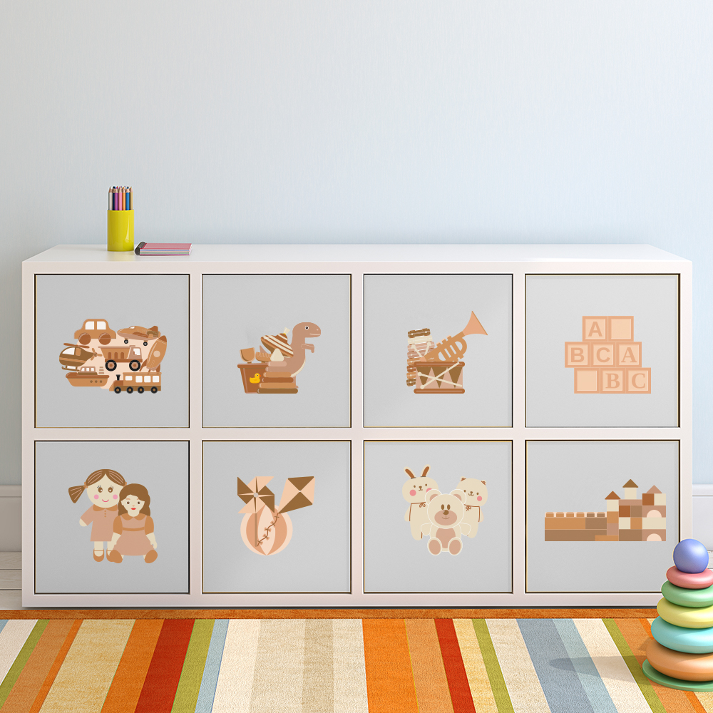 Adesivo Organizador Infantil Para Brinquedos Tons Marrom 8un