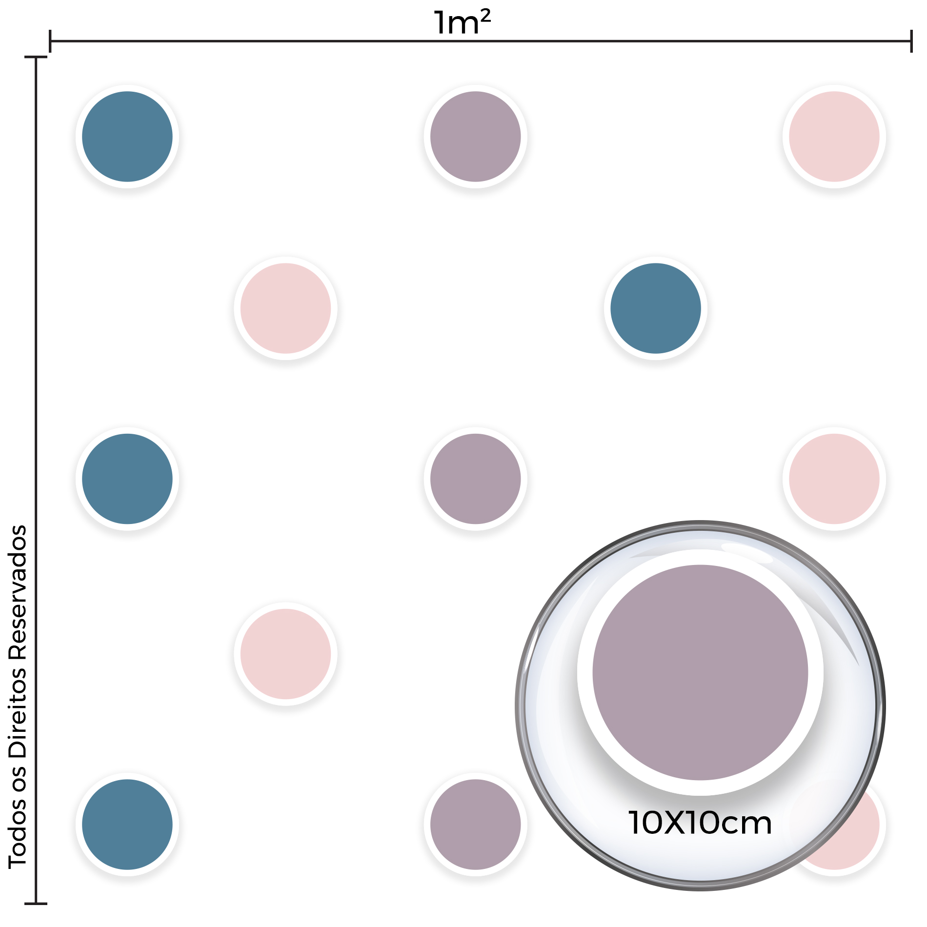 14 Bolinhas tons Frios: 10cm x 10cm