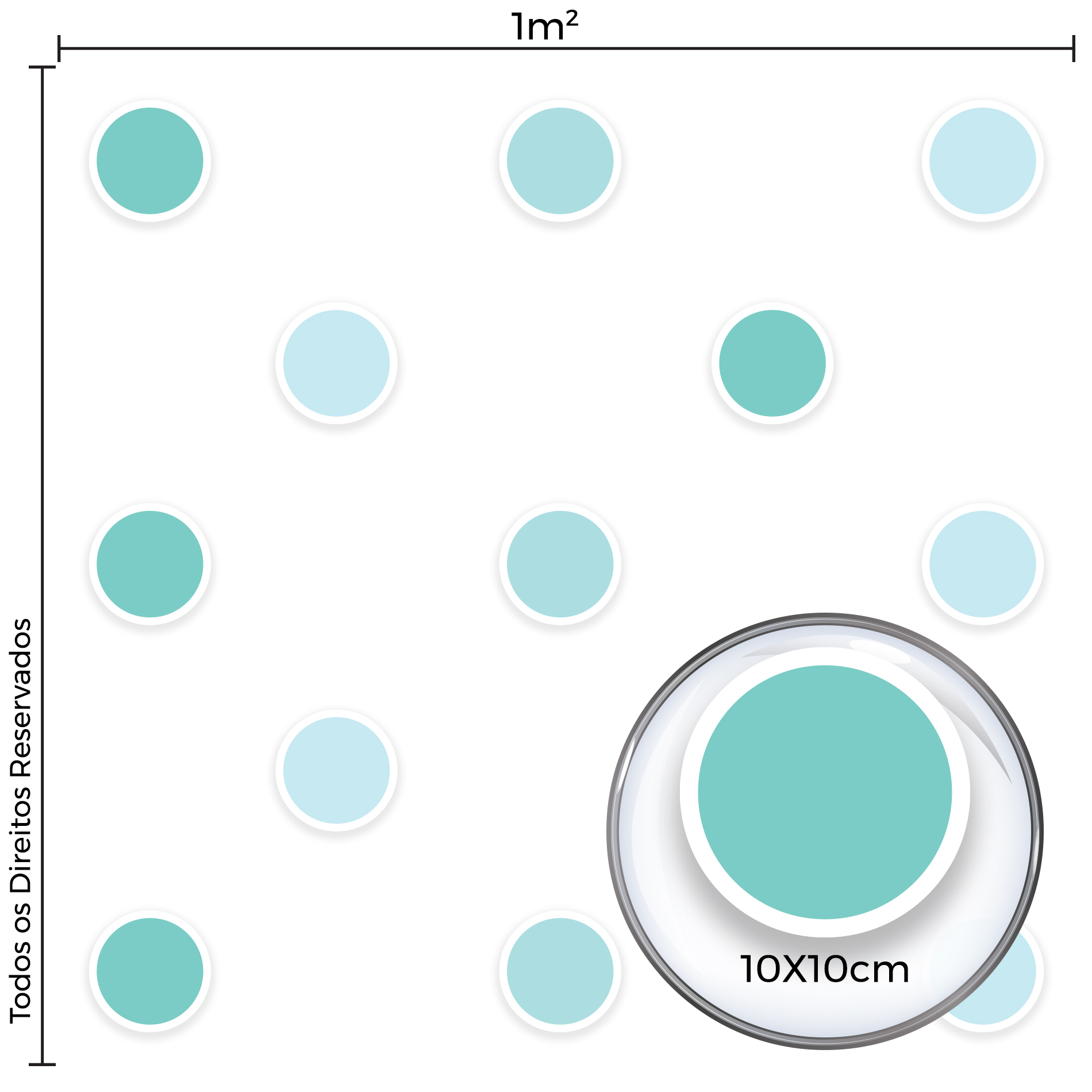 14 Bolinhas Tons Menta: 10cm x 10cm