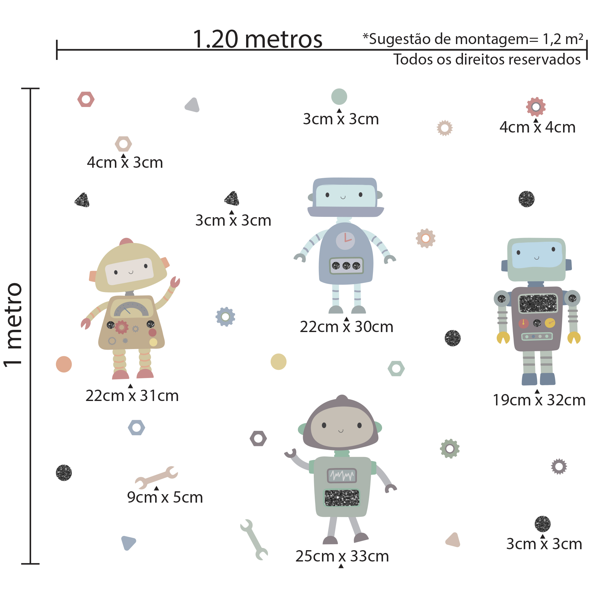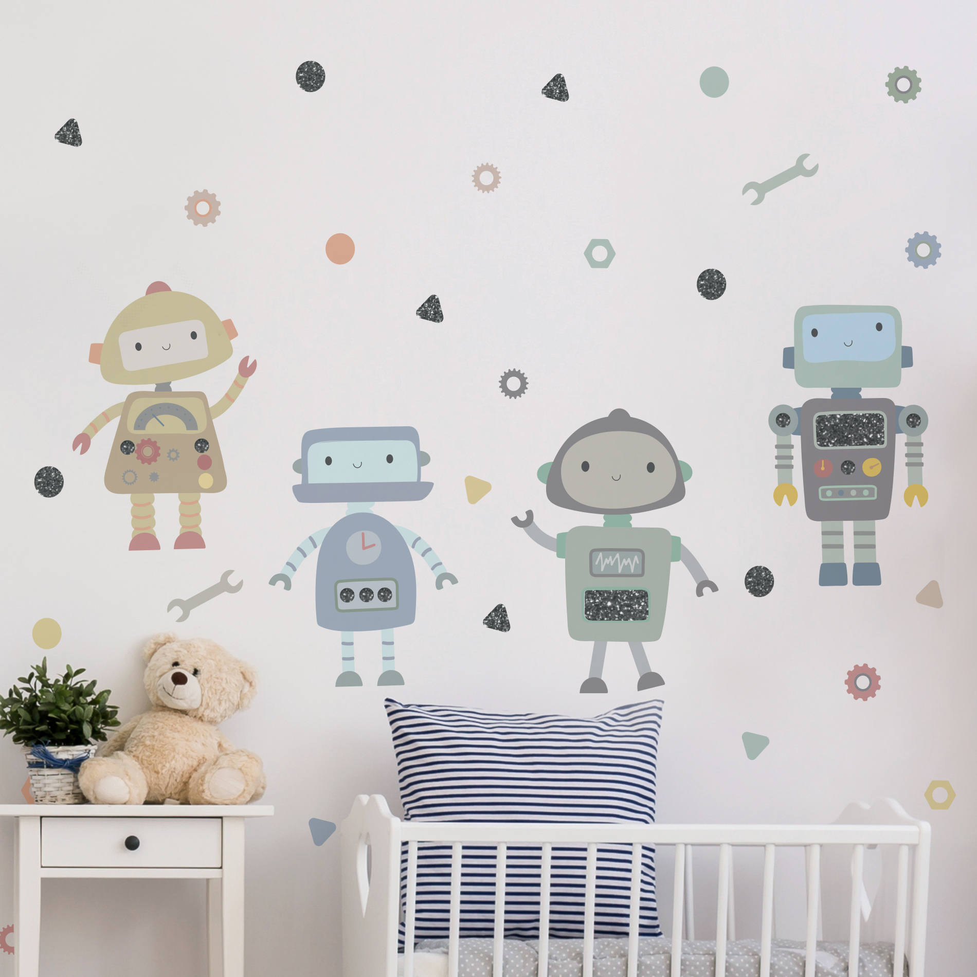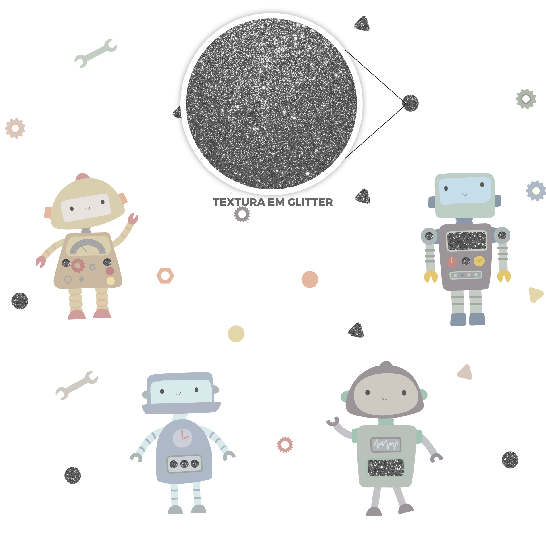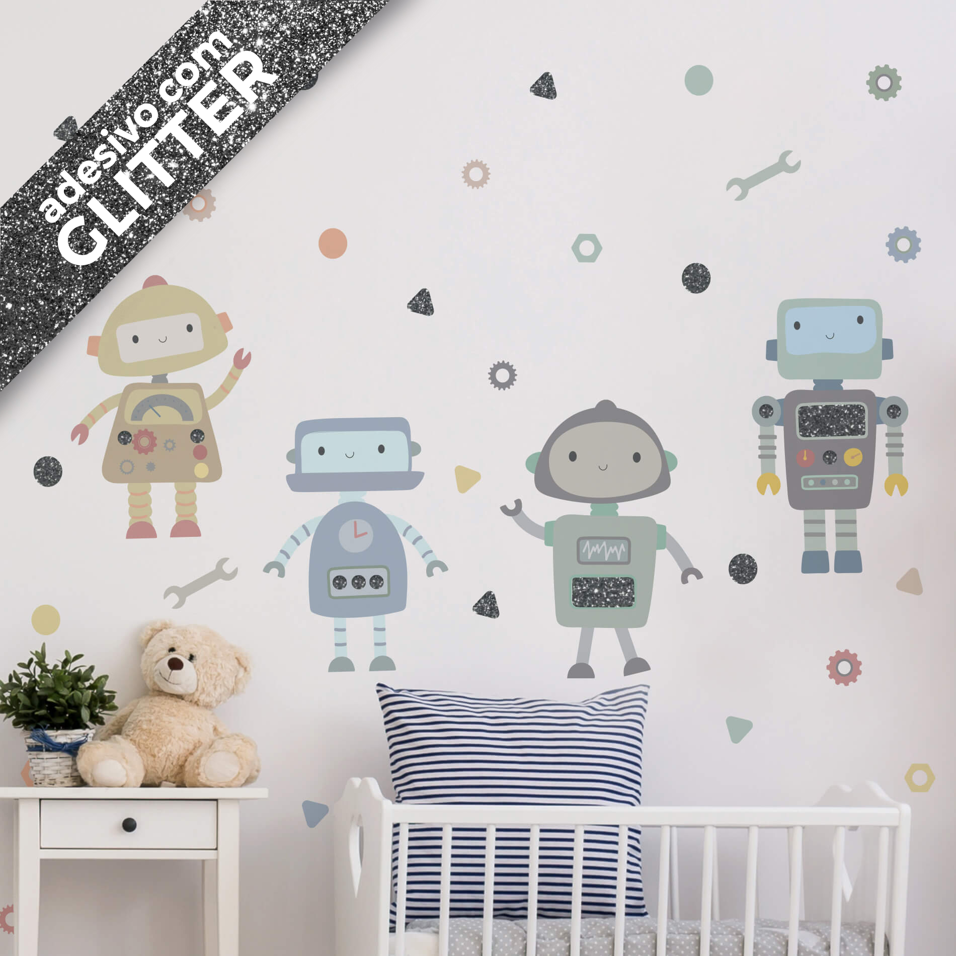 Adesivo para Quarto de Menino Robôs Infantil com Glitter