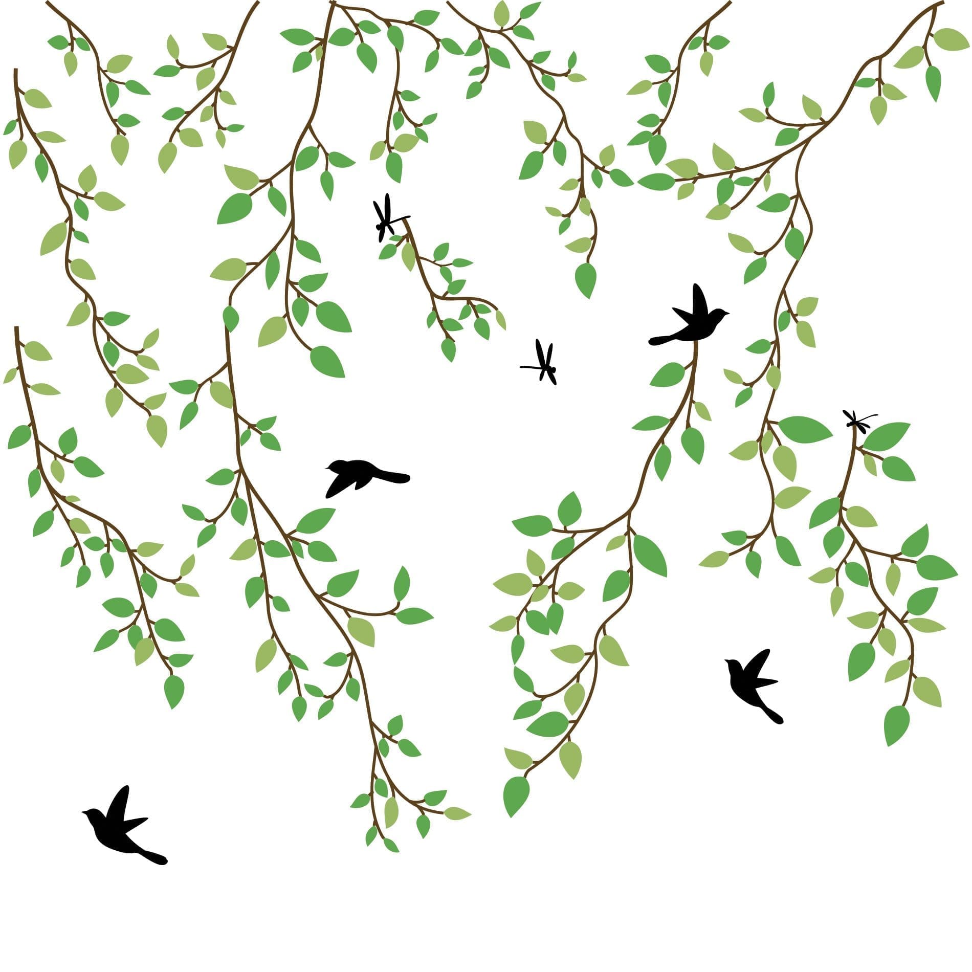 Adesivo de Parede Natureza Galhos Verdes Para Quarto