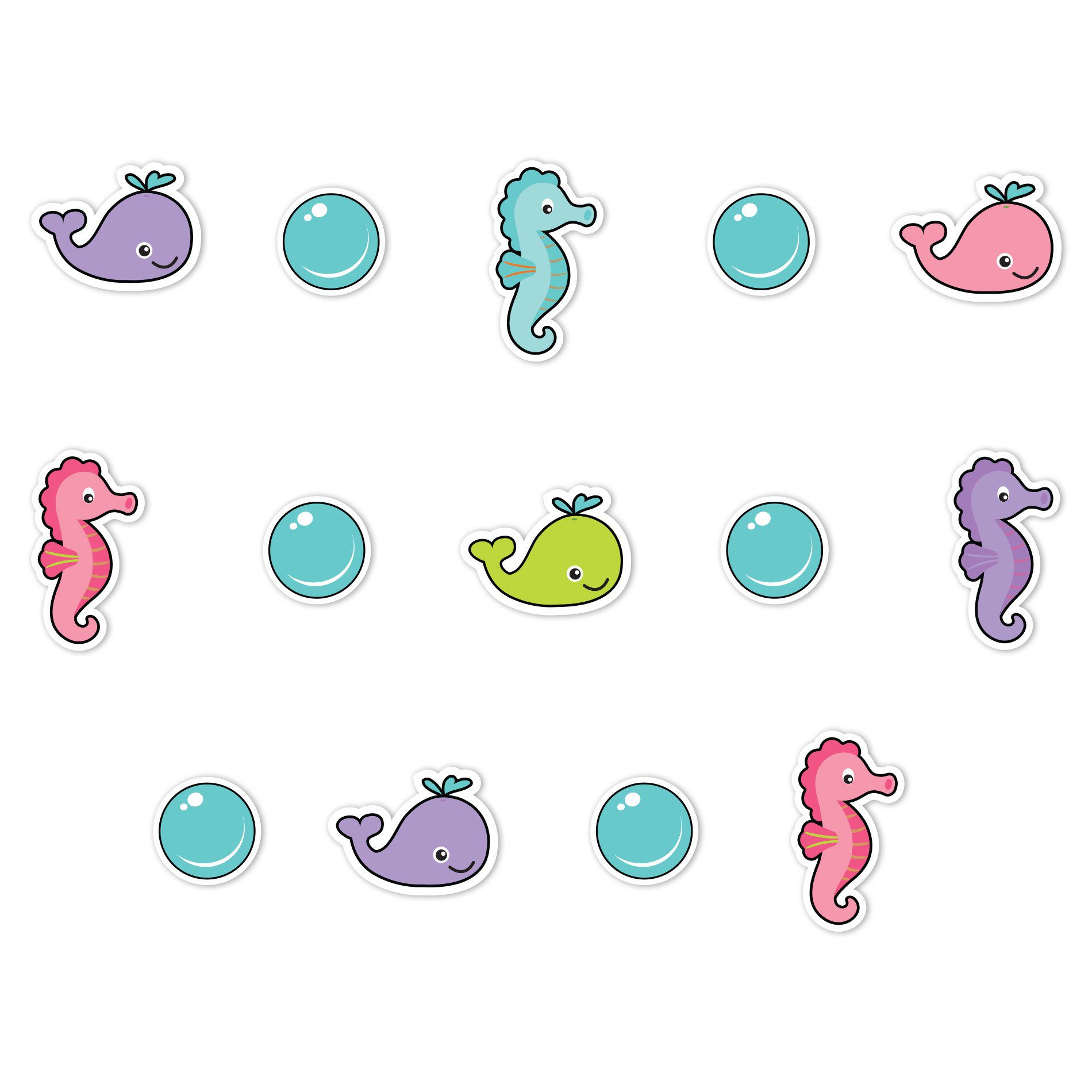 – 4 Adesivos de Cavalos Marinhos 8x15cm;