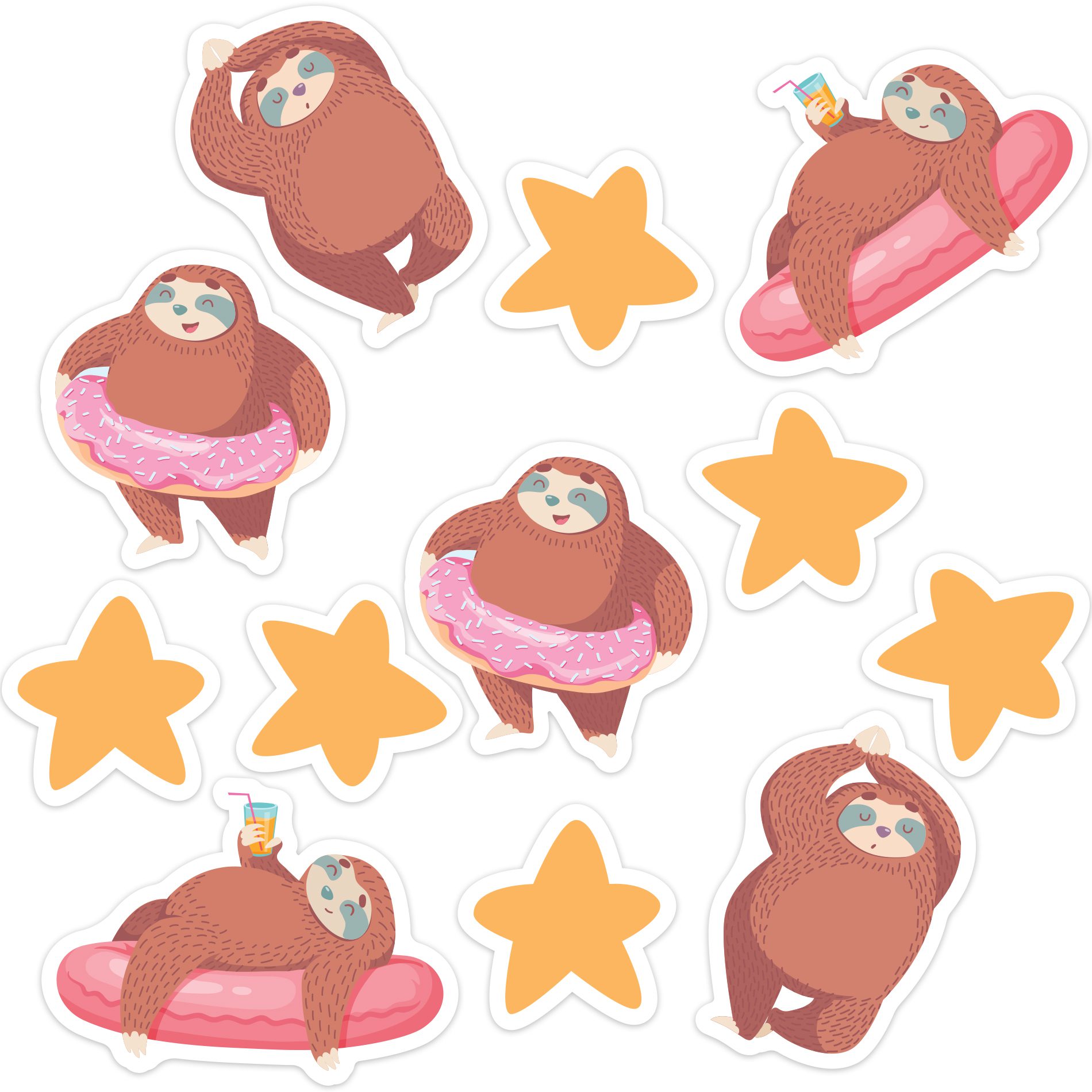 02 Adesivos de Bichos Preguiça na rosquinha: 12,9×12,2cm