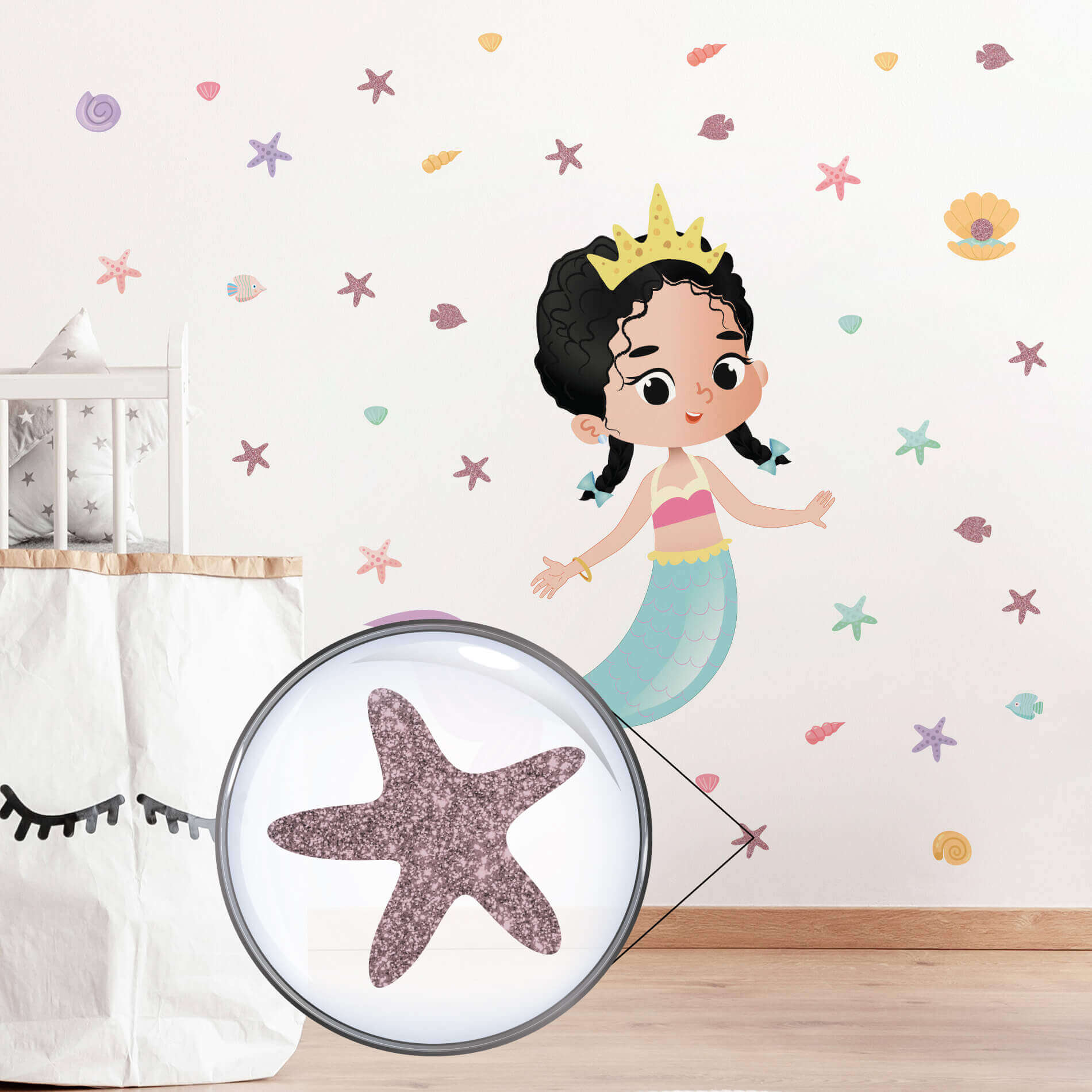 – 1 Adesivo de Parede Concha 10x9cm com Adesivo com glitter de 3cm;