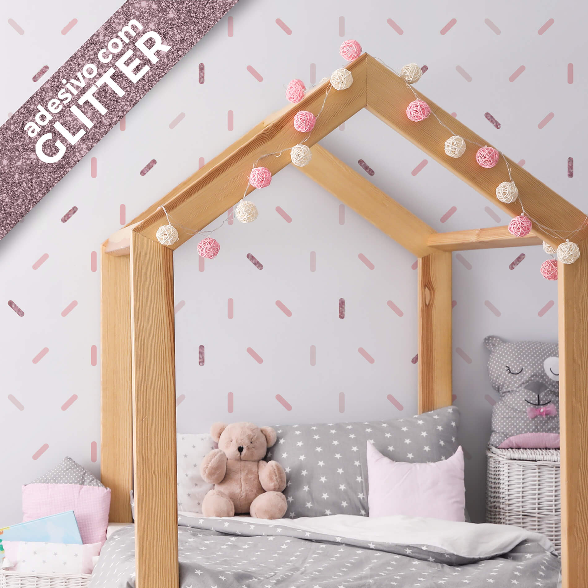 Adesivos de Parede Infantil Confetes tons Rosa Glitter Rosê Gold 154un Cobre 5m²