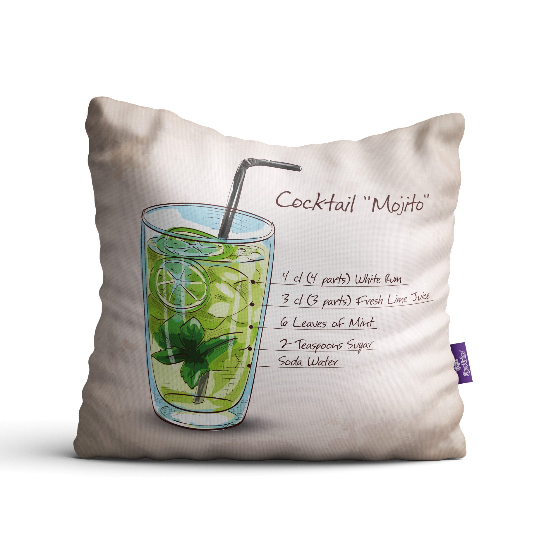 Almofadas com Frases Drinks Bege 35x35cm Kit 4un
