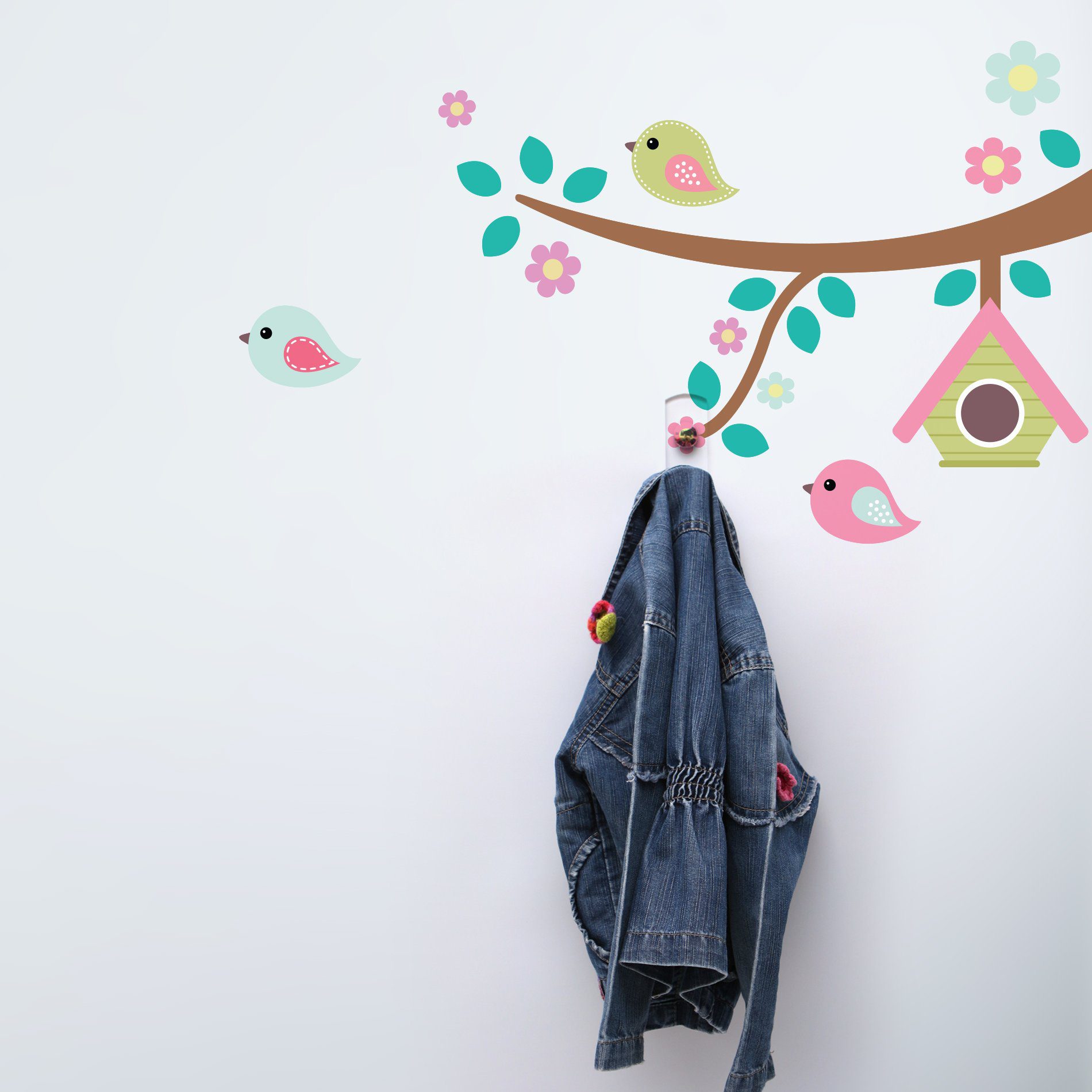 Cabideiro Acrílico com Adesivo de Parede Pássaros 3 un