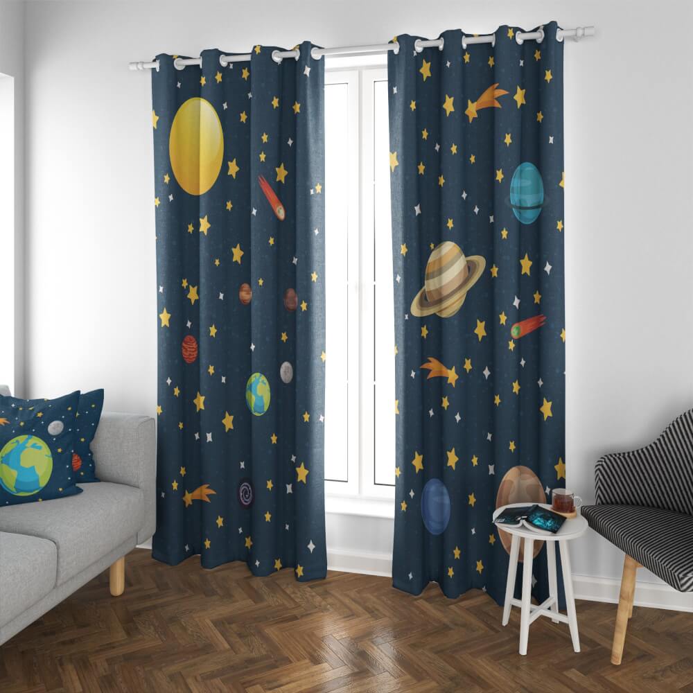 Dimensões e Características da Cortina Infantil Sistema Solar Para Quarto: