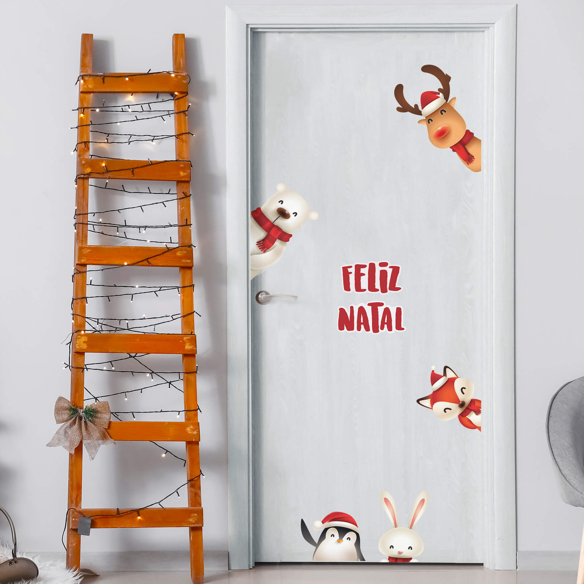 Decoração de Natal Adesivo Bichinhos Frase Parede Porta