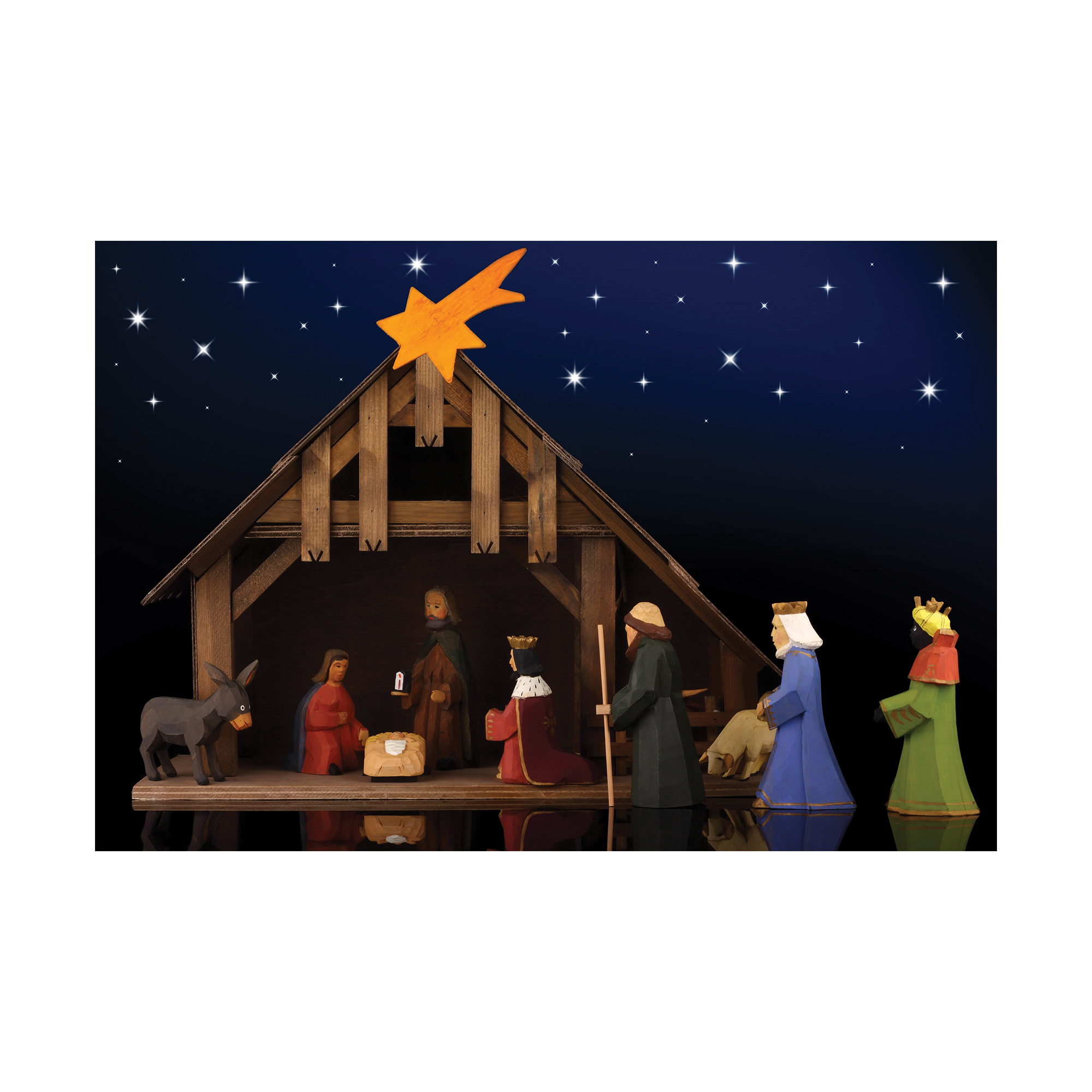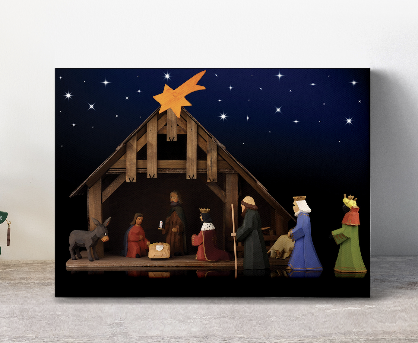 A placa decorativa representa o cenário do presépio e pode ser colocado na parede ou encostado em um aparador, da maneira que mais combinar com a decoracão de Natal da sua casa.