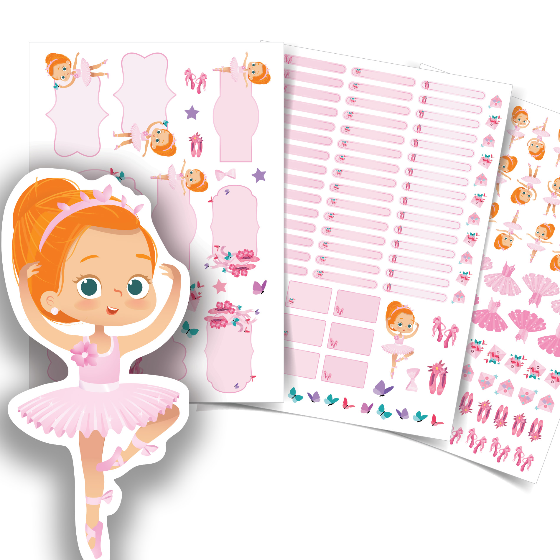 As bailarinas ruivas são delicadas e cheias de graça, adicionando um toque especial aos cadernos, livros e material escolar. Cada etiqueta é personalizada com o nome do seu filho, garantindo que seus pertences se destaquem na multidão.