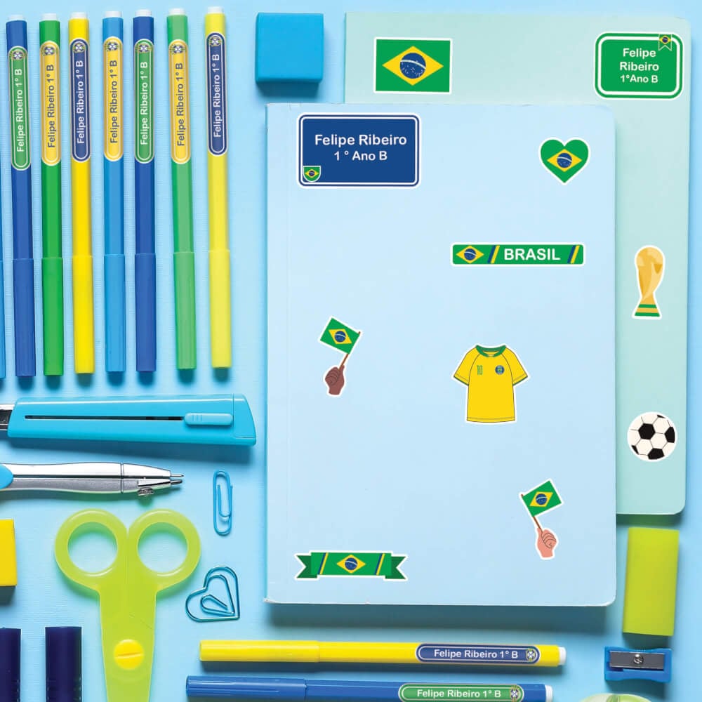 Etiqueta Escolar Personalizada Copa do Mundo Bandeira Brasil Kit Jumbo