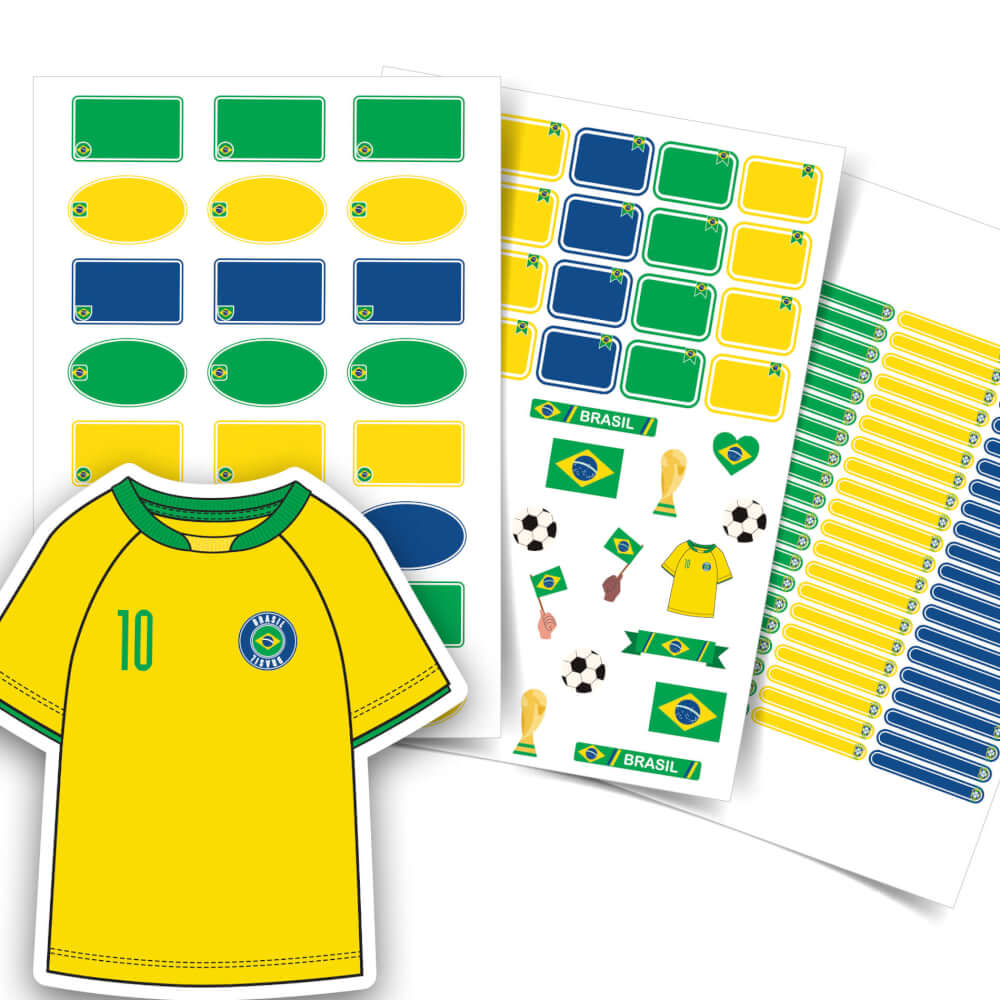 O kit de etiquetas escolares Copa do Mundo vem com 118 adesivos escolares distribuídos em: