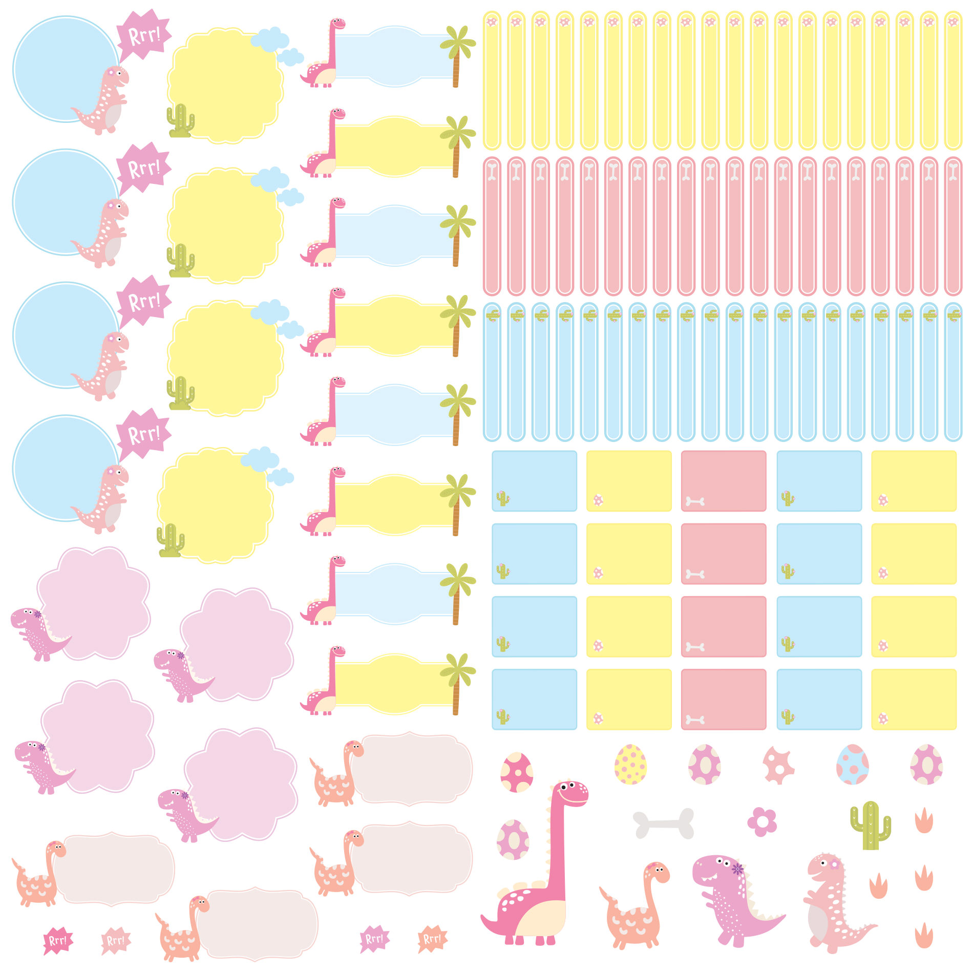 O kit de etiquetas escolares vem com 126 adesivos escolares distribuídos em: