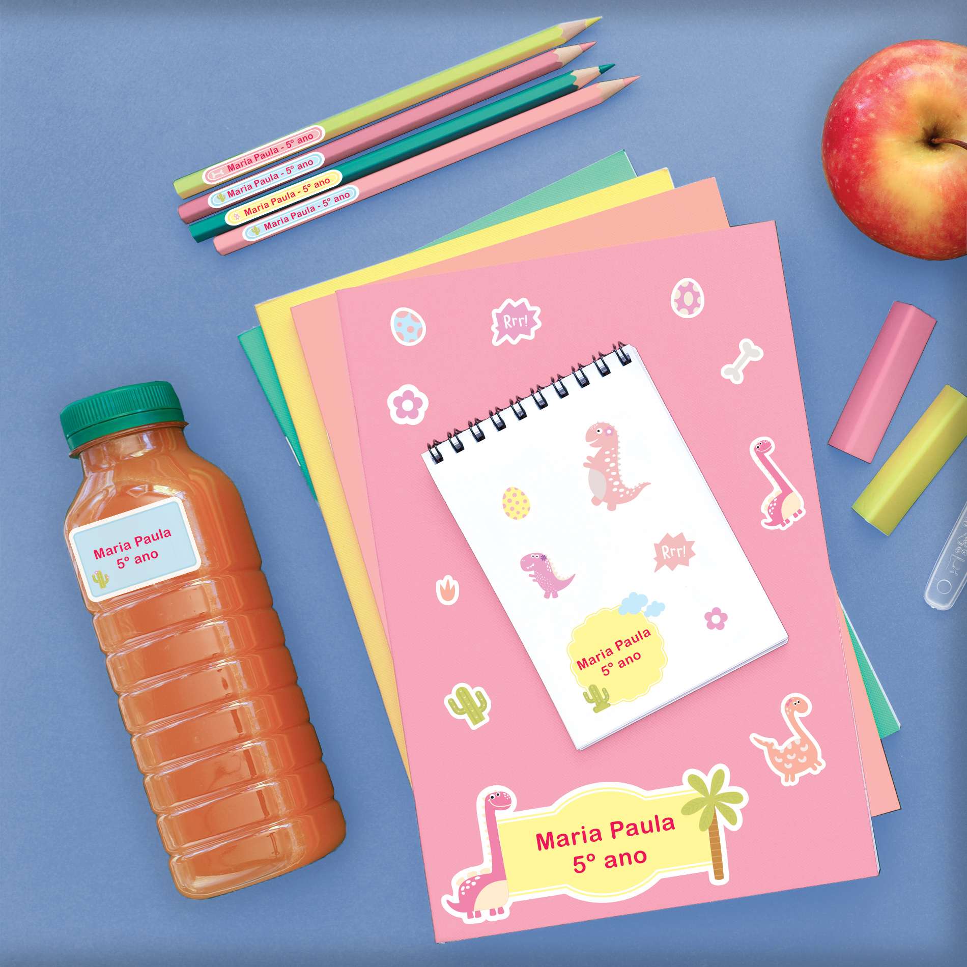 Etiqueta Escolar Personalizada Dinossauro Menina 2 Tags Mochila