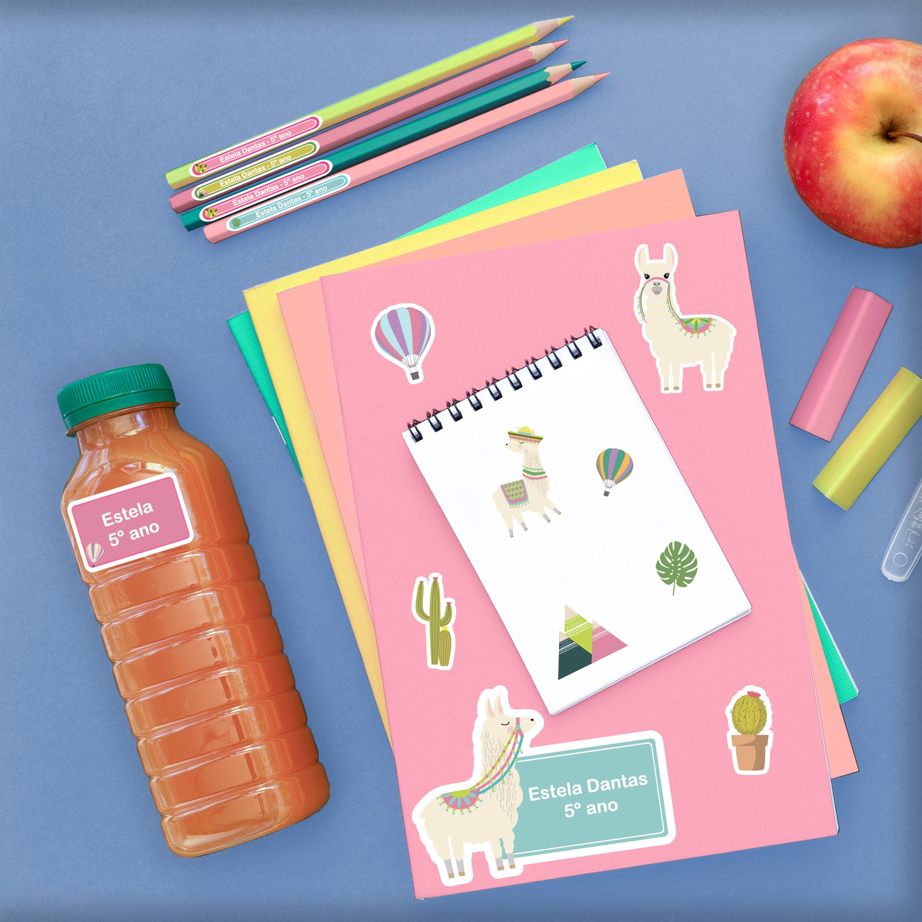 Etiquetas Escolares Lhama Personalizadas Kit Jumbo com 2 Tags para Mochila