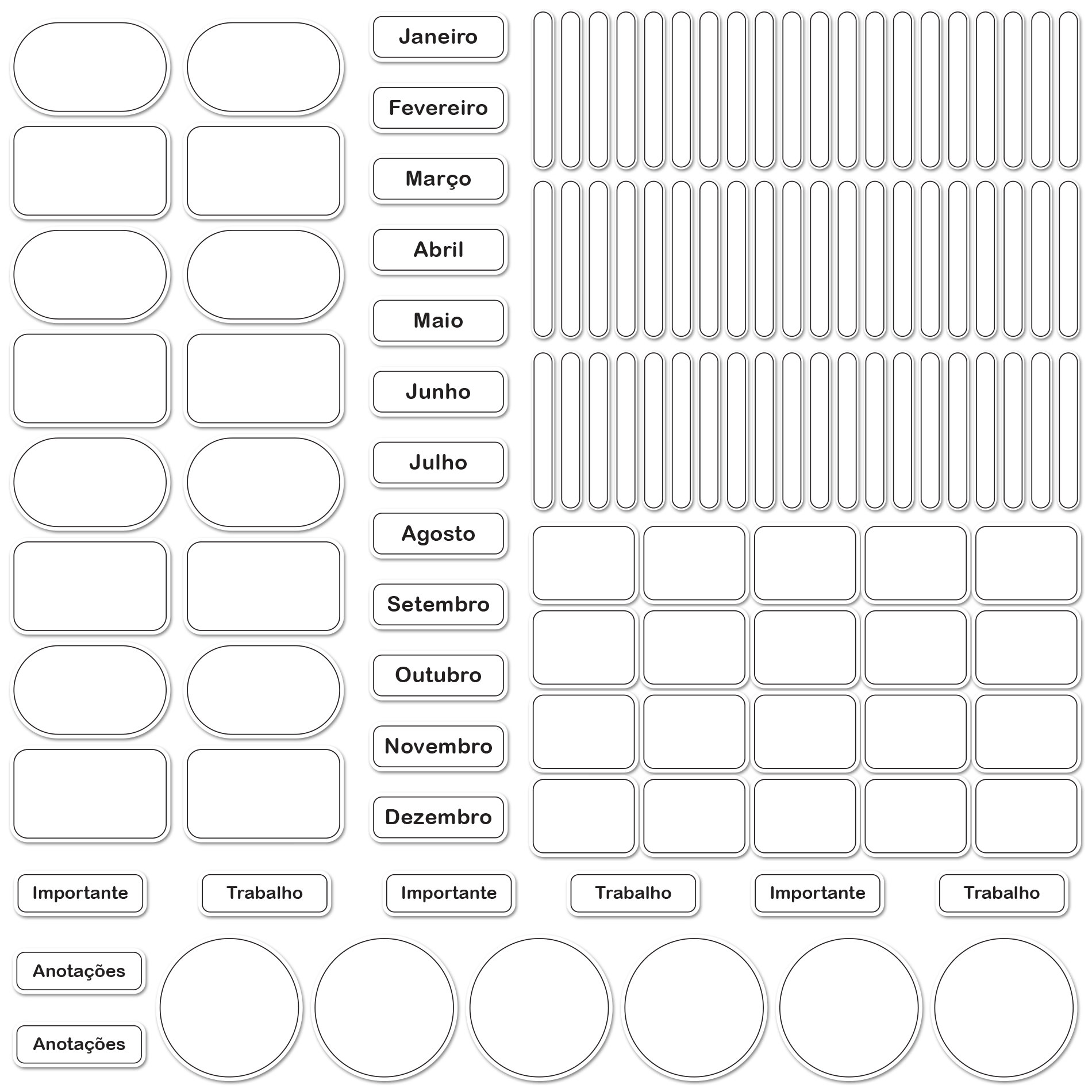 O kit de Etiquetas Escolares vem com 122 Adesivos distribuídos em: