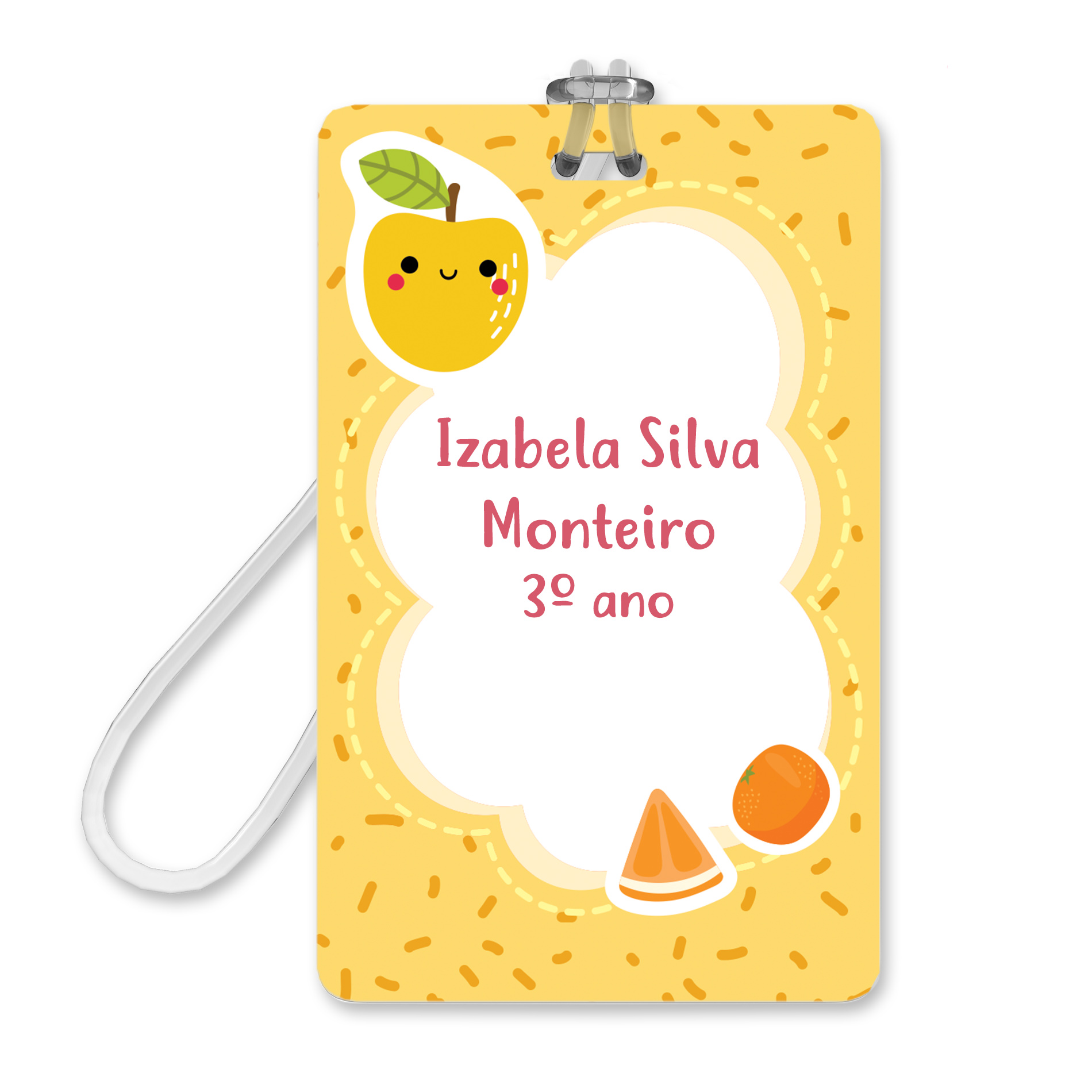 Imagem de etiqueta escolar personalizada com tag para mochila em fundo brancoEtiquetas Escolares Frutas Personalizadas 2 Tags Mochila