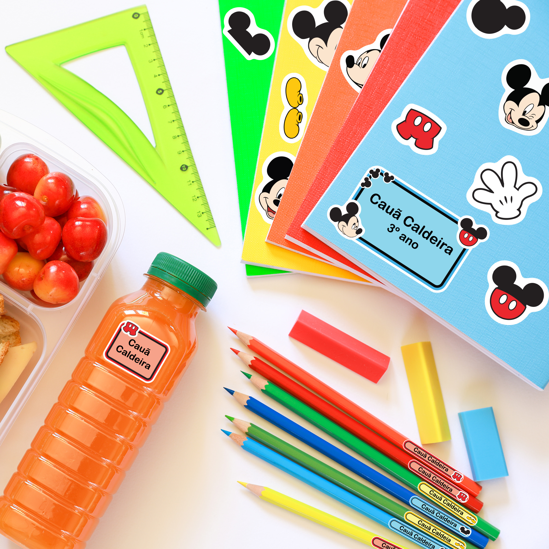 As etiquetas escolares são à prova d’água e podem ser coladas sem medo em objetos como copinhos, mamadeiras, estojos de escova de dentes, etc.
