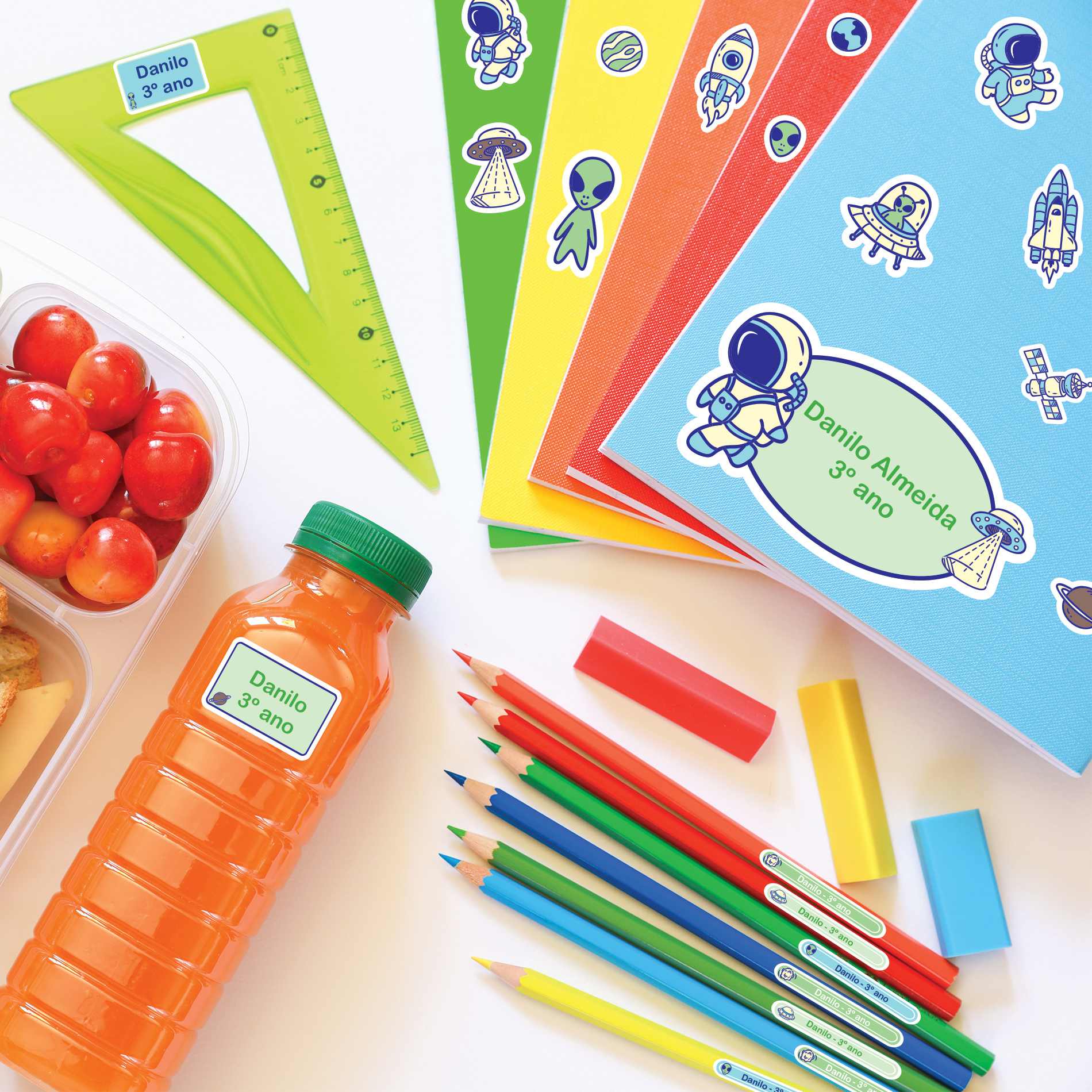 4. Estilo e Diversão: O design de astronauta adiciona um toque de diversão ao material escolar do seu filho, incentivando a criatividade e o interesse pela aprendizagem.