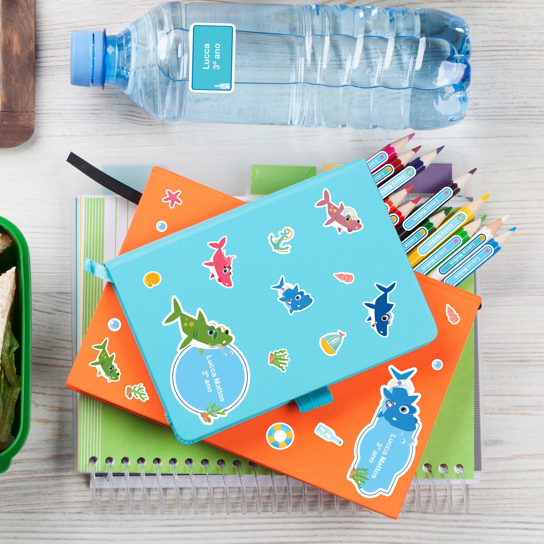 As etiquetas escolares personalizadas são feitas com materiais de alta qualidade, duráveis e resistentes à água, garantindo que elas permaneçam intactas mesmo com o uso diário. Além disso, a personalização com o tema Baby Shark adiciona um toque de diversão e alegria ao equipamento escolar do seu filho, tornando a rotina escolar mais animada.
