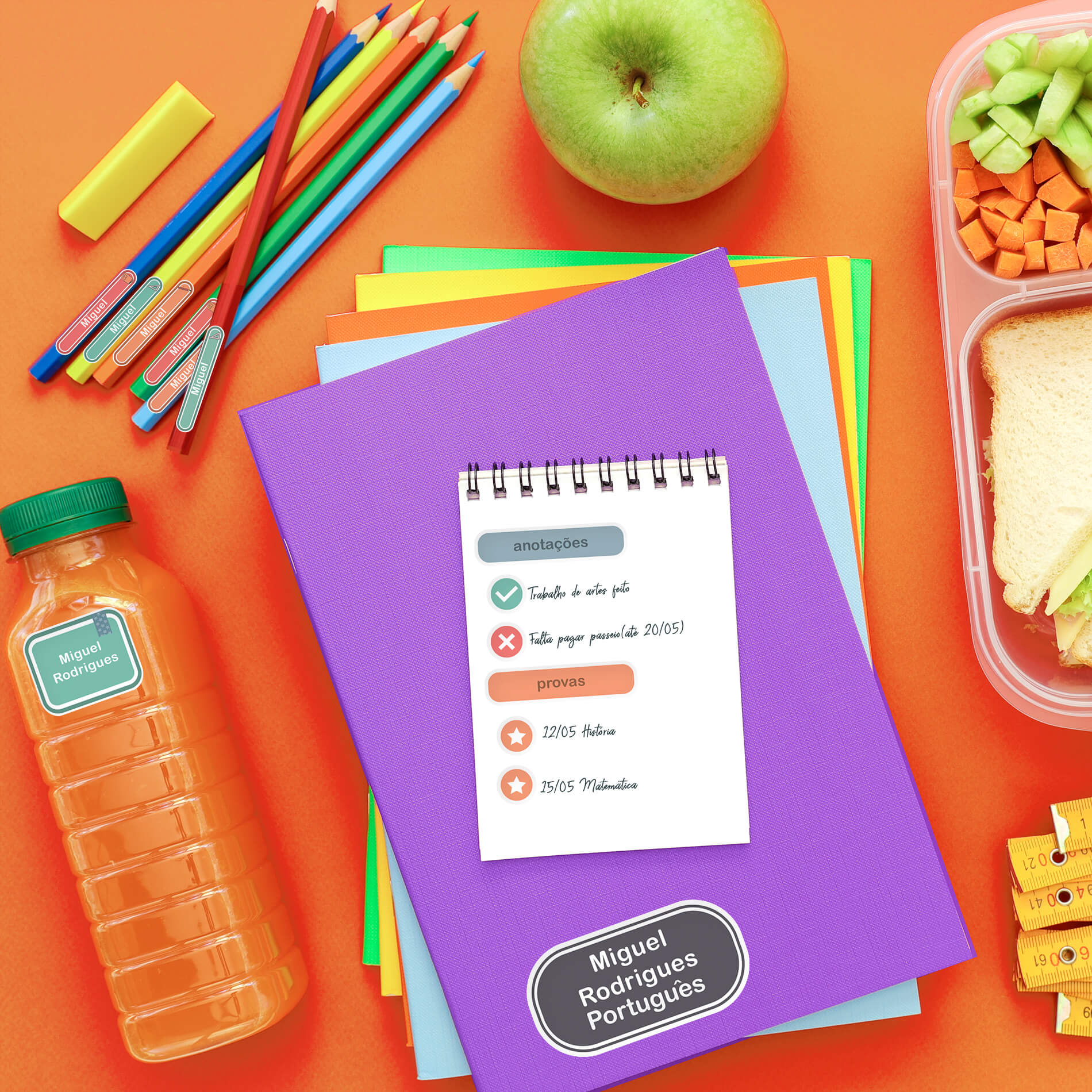 Com um design personalizado e a possibilidade de adicionar suas matérias escolares favoritas, nossas etiquetas não apenas ajudam na organização, mas também refletem seu estilo e individualidade. Seja você um fã de matemática, história, ciências ou qualquer outra disciplina, temos opções para todos os gostos.