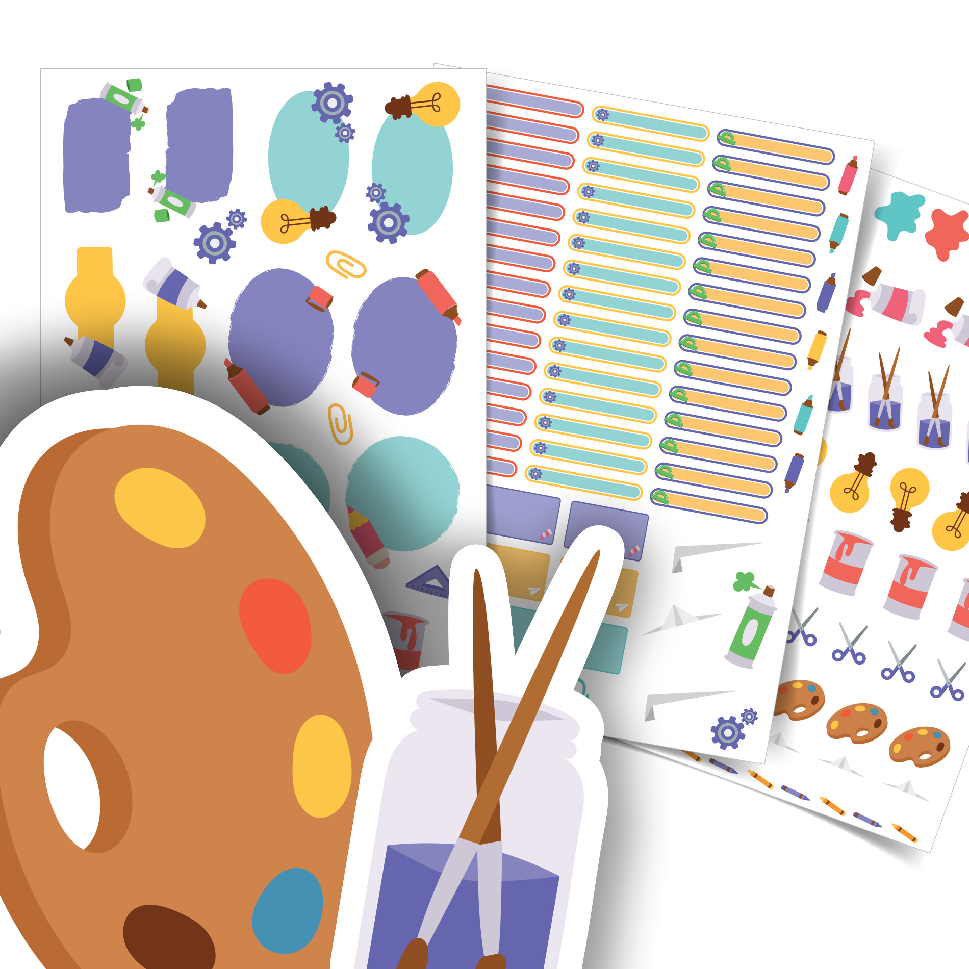 O kit de etiquetas escolares vem com 127 adesivos escolares distribuídos em: