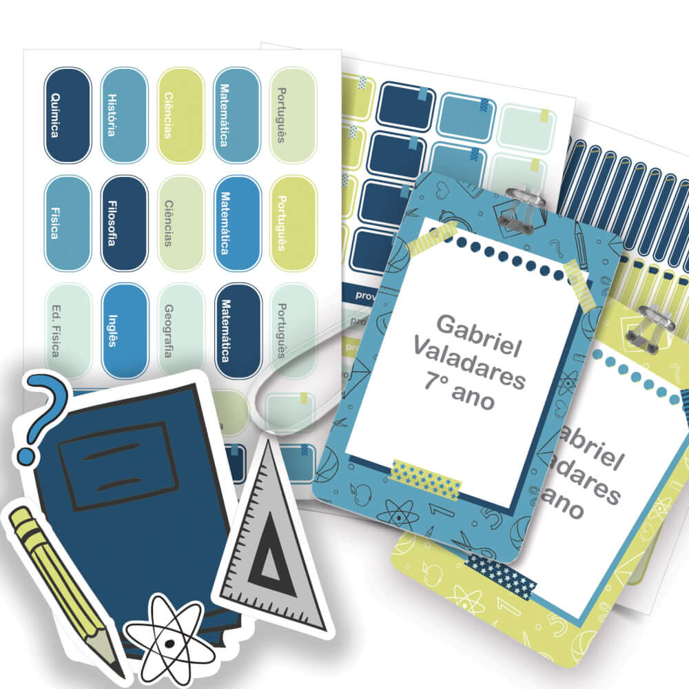 Etiqueta Escolar Mochila Personalizada Matérias e 2 Tags Azul e Verde
