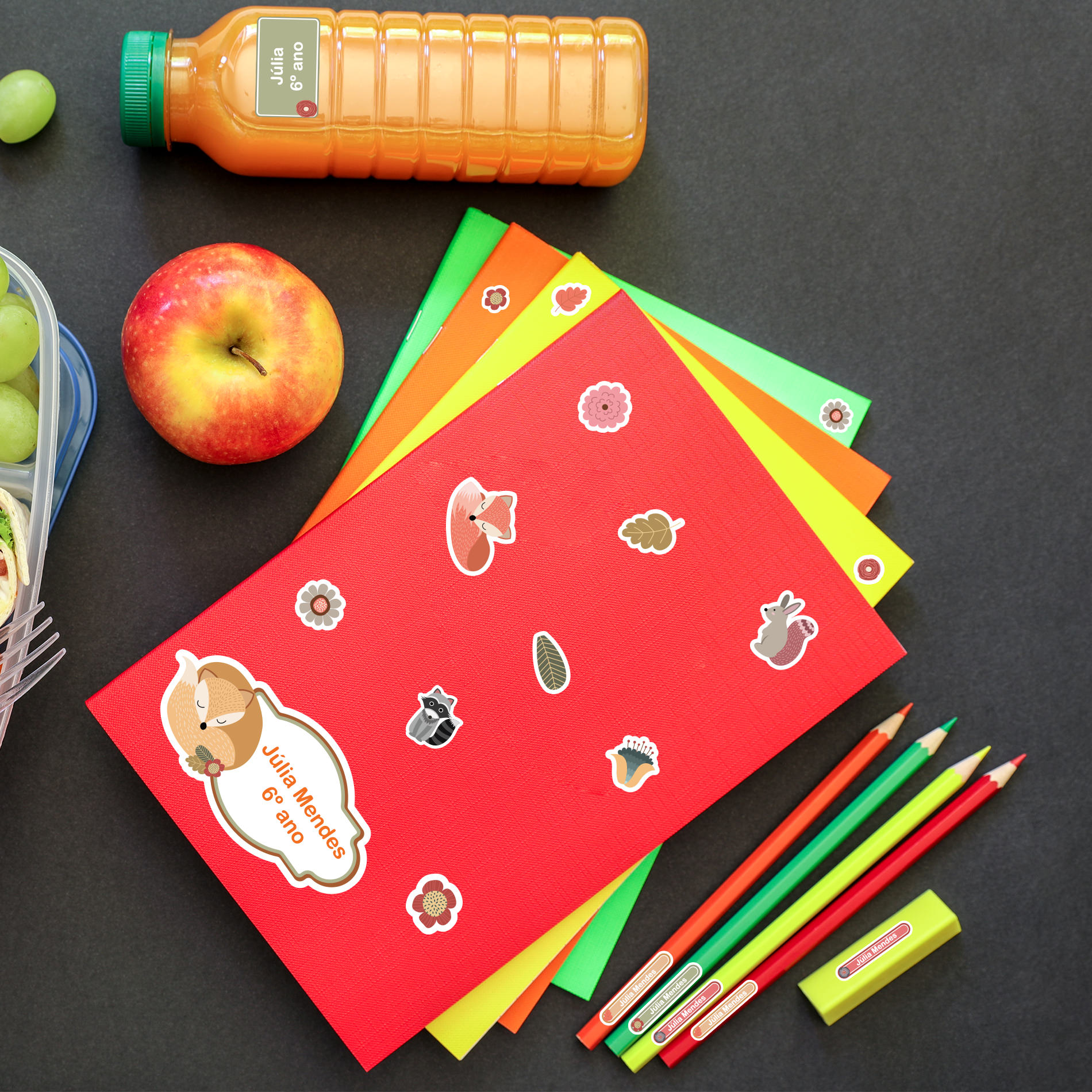 Etiquetas Escolares Personalizadas Raposa Kit Jumbo com 2 Tags para Mochila
