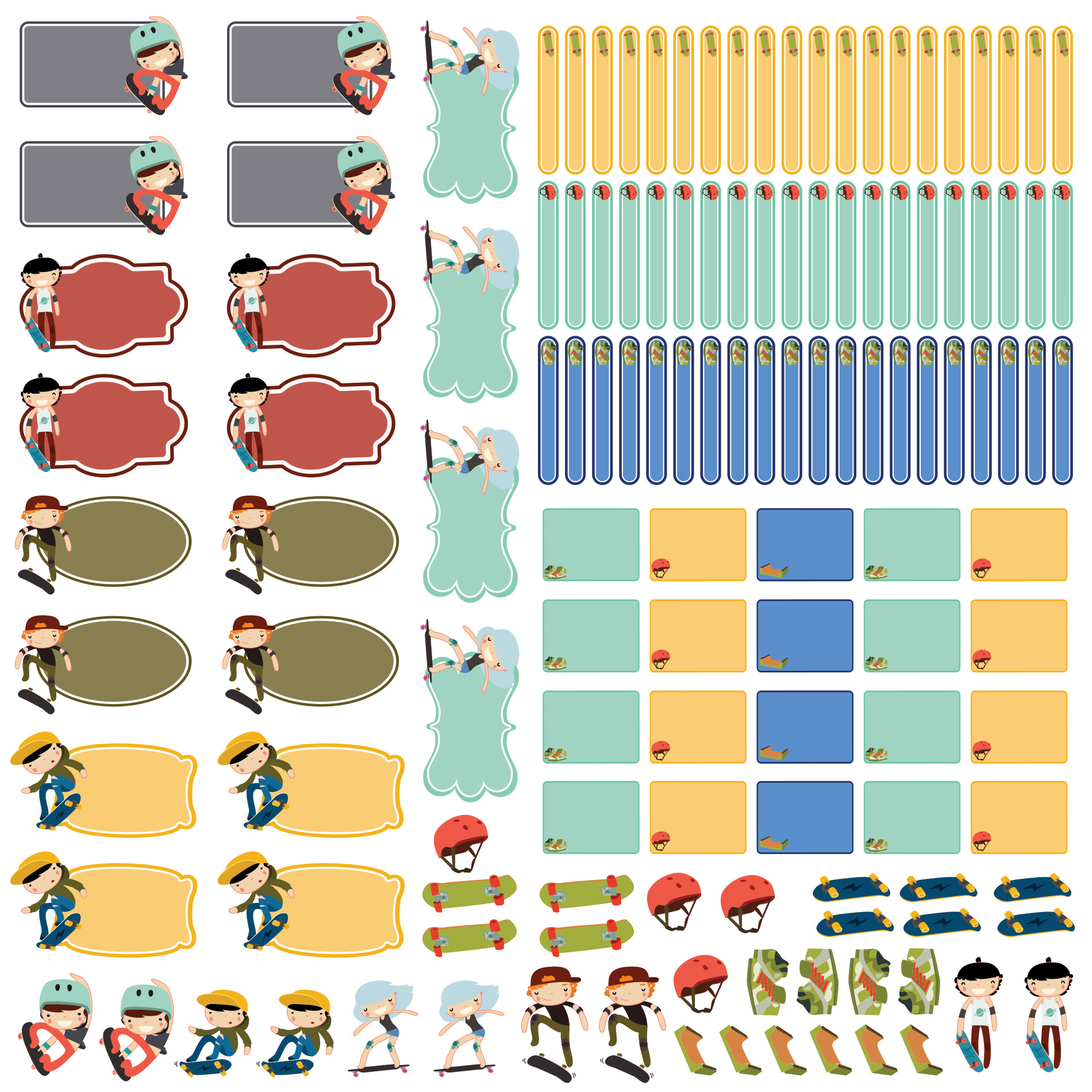Etiquetas Escolares Personalizadas Skate Kit Jumbo