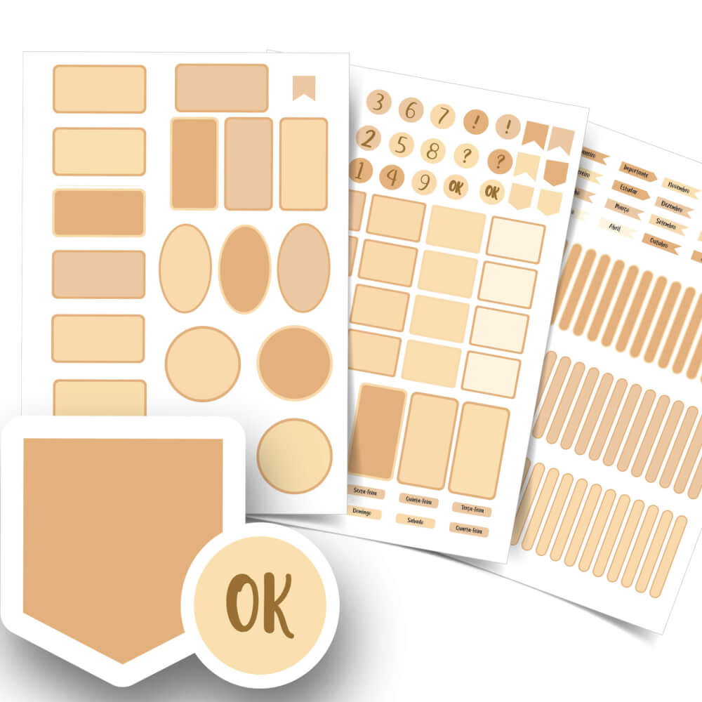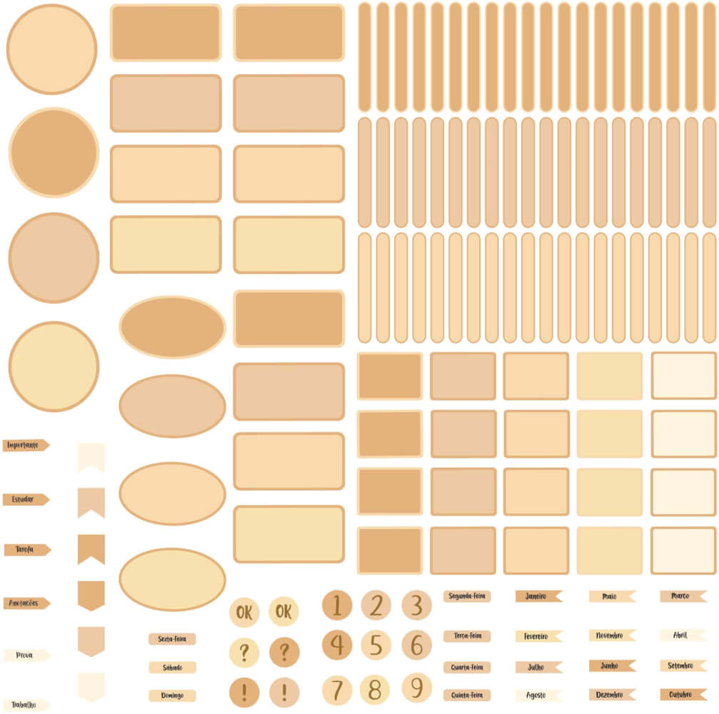 O kit de Etiqueta Escolar Bege vem com 146 Adesivos distribuídos em: