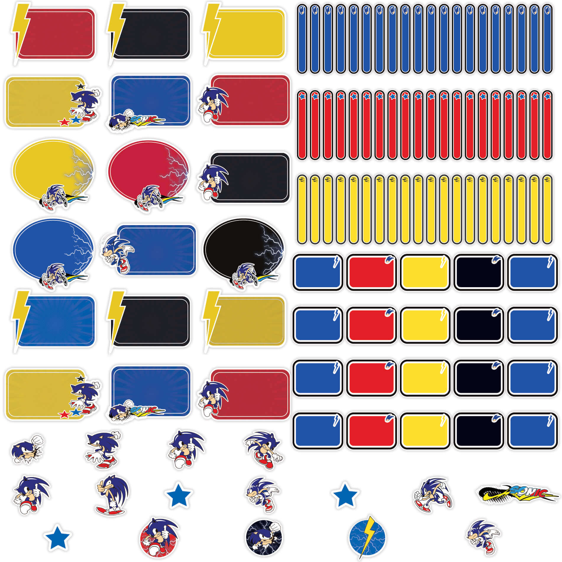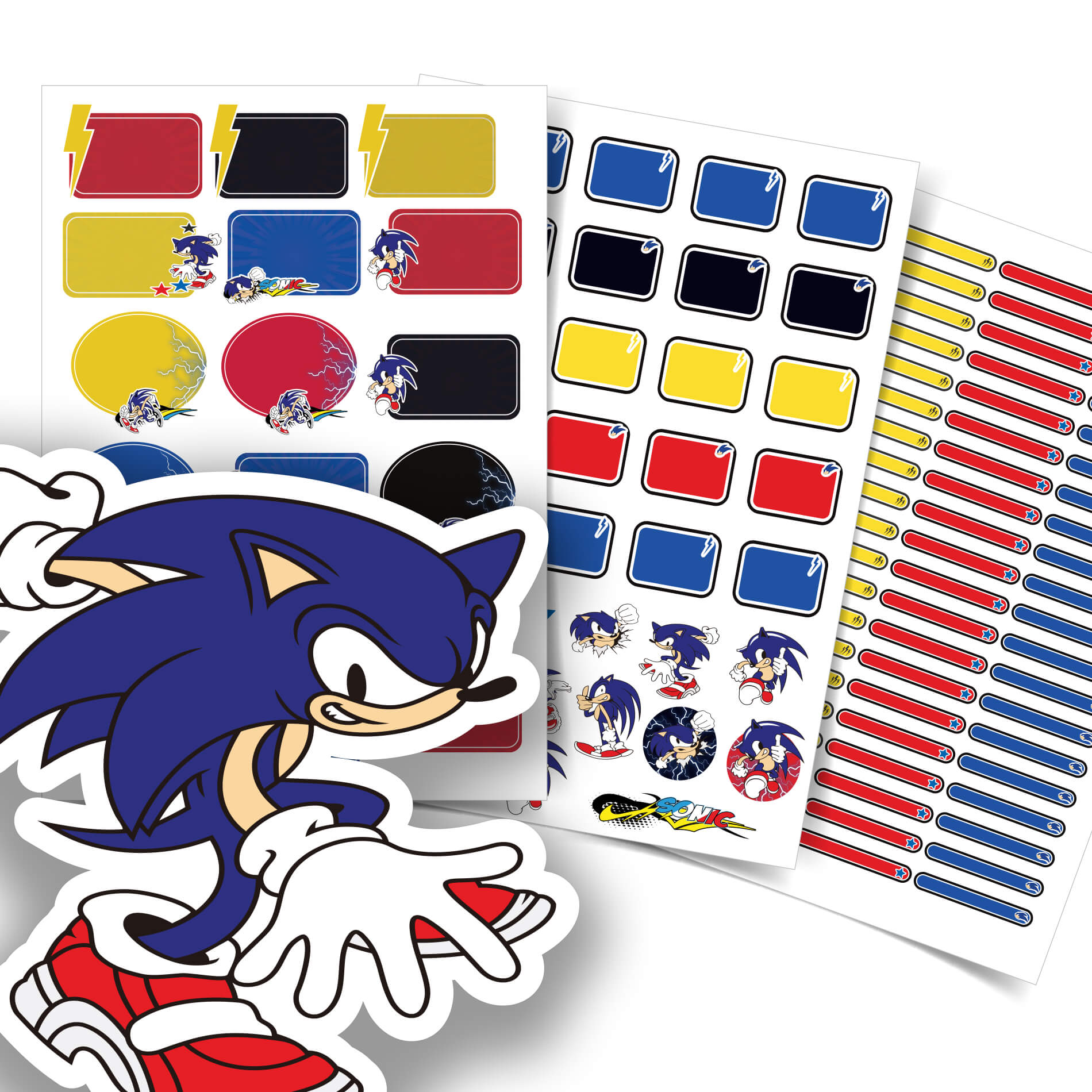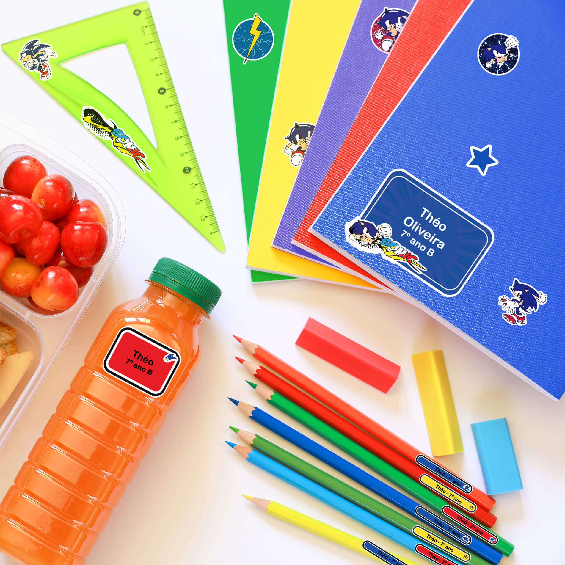 O kit de Etiquetas Escolares Sonic vem com 114 Adesivos distribuídos em:
