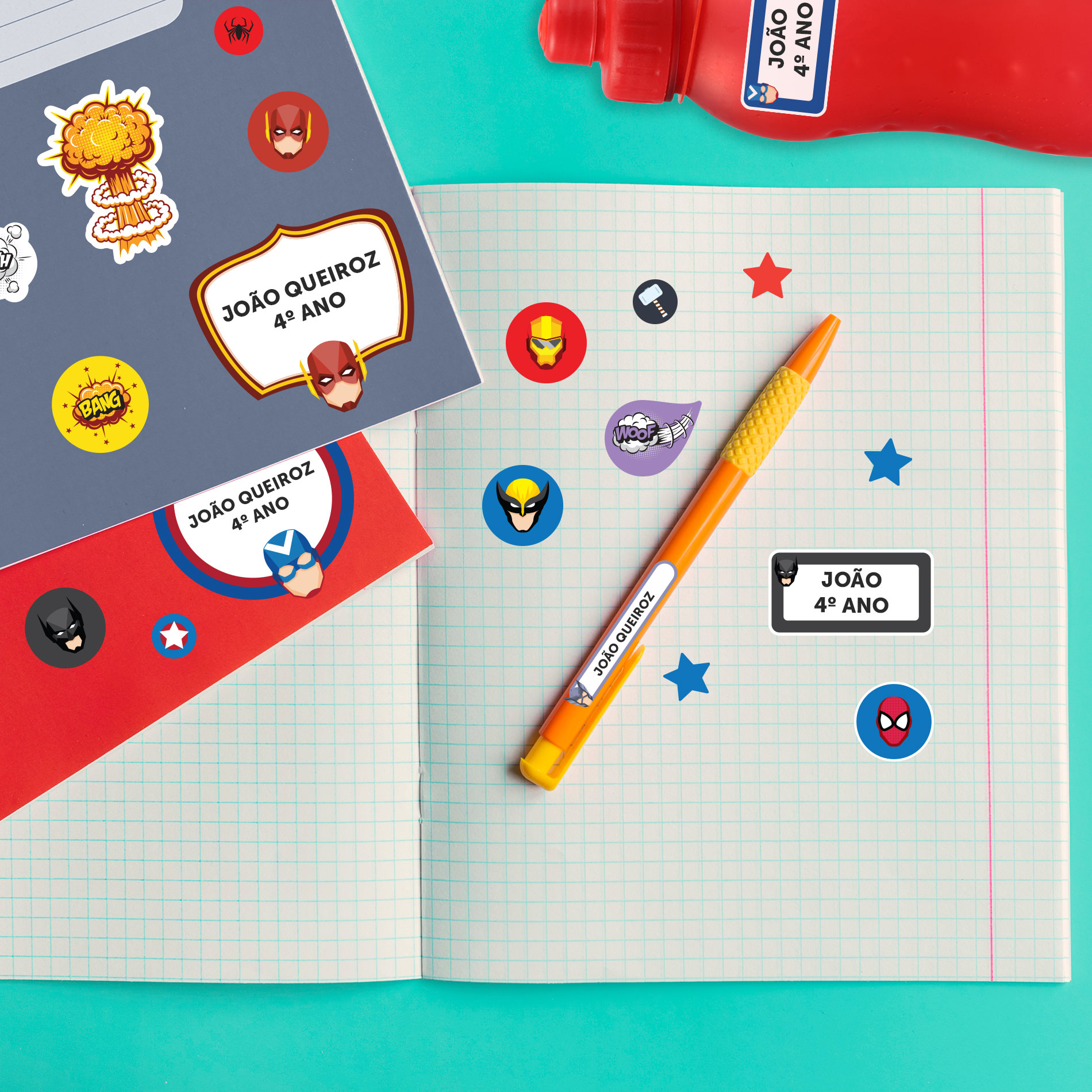 Para organizar material escolar, objetos e tudo o que as crianças precisam levar para a escola. As etiquetas escolares são uma solução criativa prática. Já vem prontas, com o nome e série impressos, é só tirar o adesivo e colar. As crianças podem até ajudar a etiquetar o próprio material, vira uma diversão!