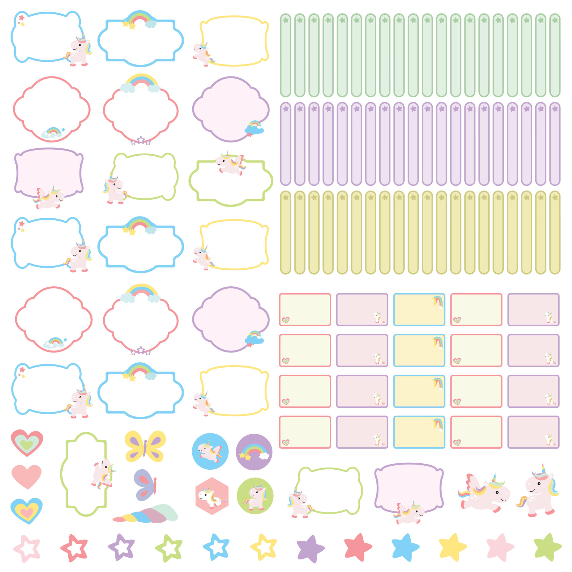 O kit de etiquetas escolares vem com 121 etiquetas escolares distribuídas em: