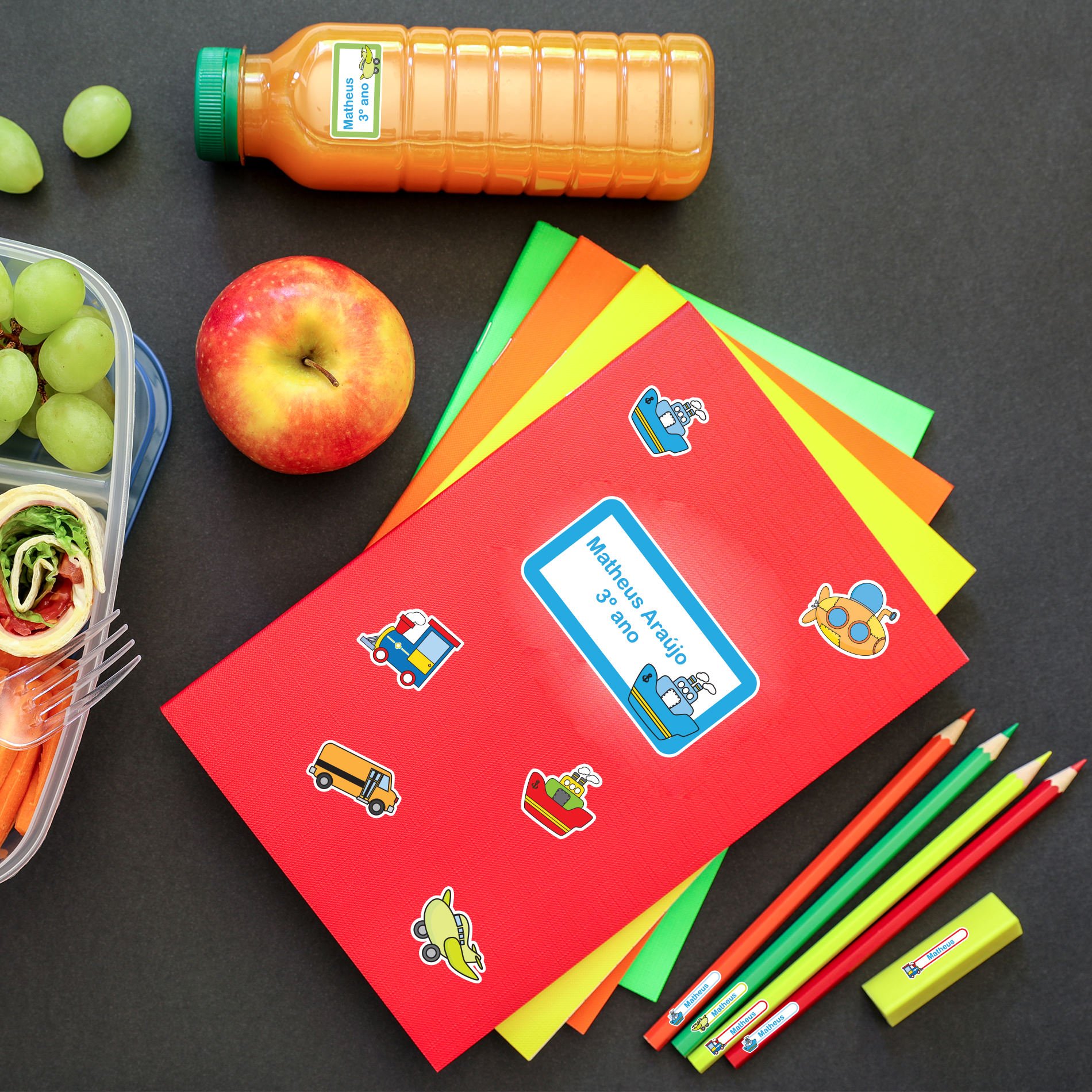 Para organizar material escolar, objetos e tudo o que as crianças precisam levar para a escola. As etiquetas escolares são uma solução criativa prática. Já vem prontas, com o nome e série impressos, é só tirar o adesivo e colar. As crianças podem até ajudar a etiquetar o próprio material, vira uma diversão!