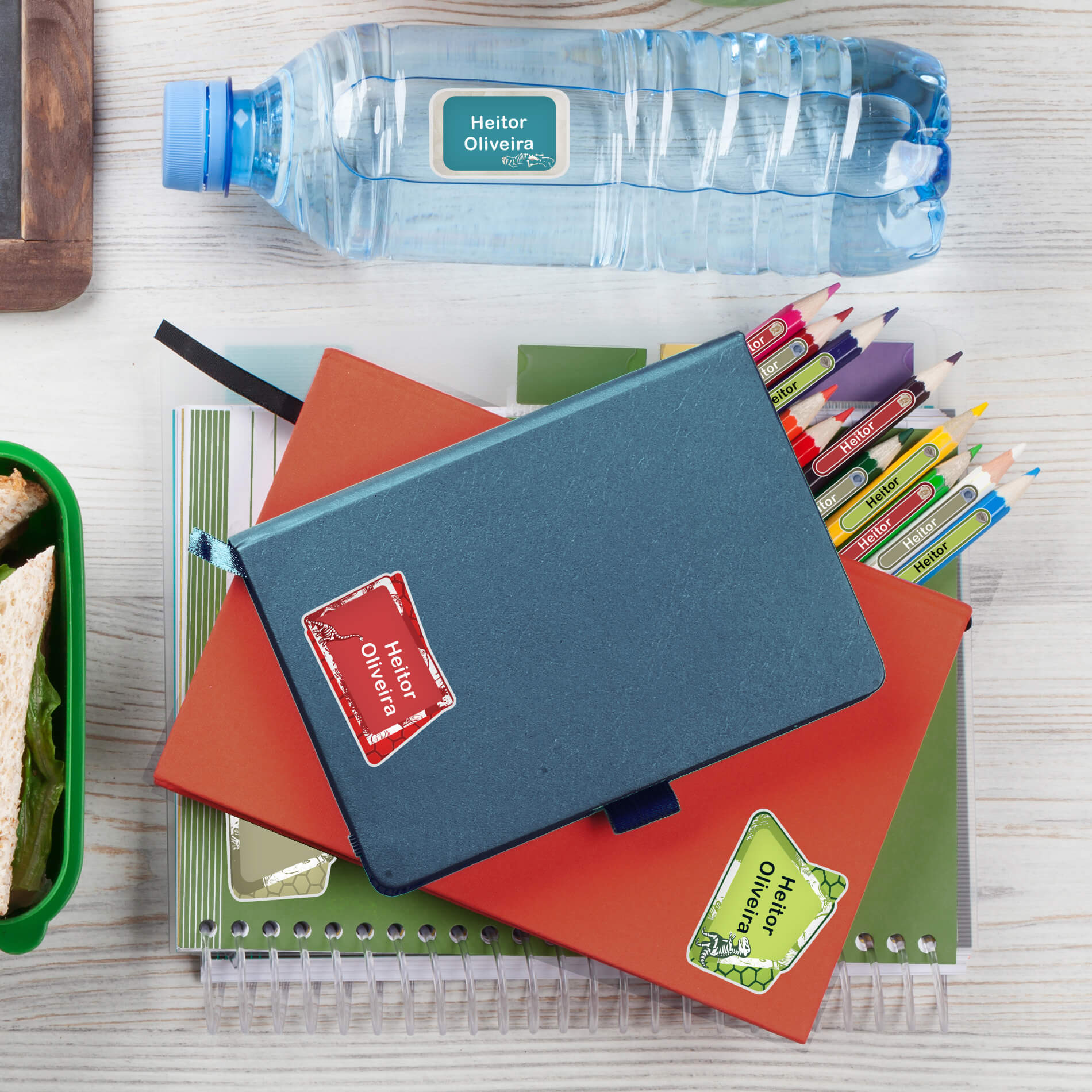 Para organizar material escolar, objetos e tudo o que as crianças precisam levar para a escola. As etiquetas escolares são uma solução criativa prática. Já vem prontas, com o nome e série impressos, é só tirar o adesivo e colar. As crianças podem até ajudar a etiquetar o próprio material, vira uma diversão!