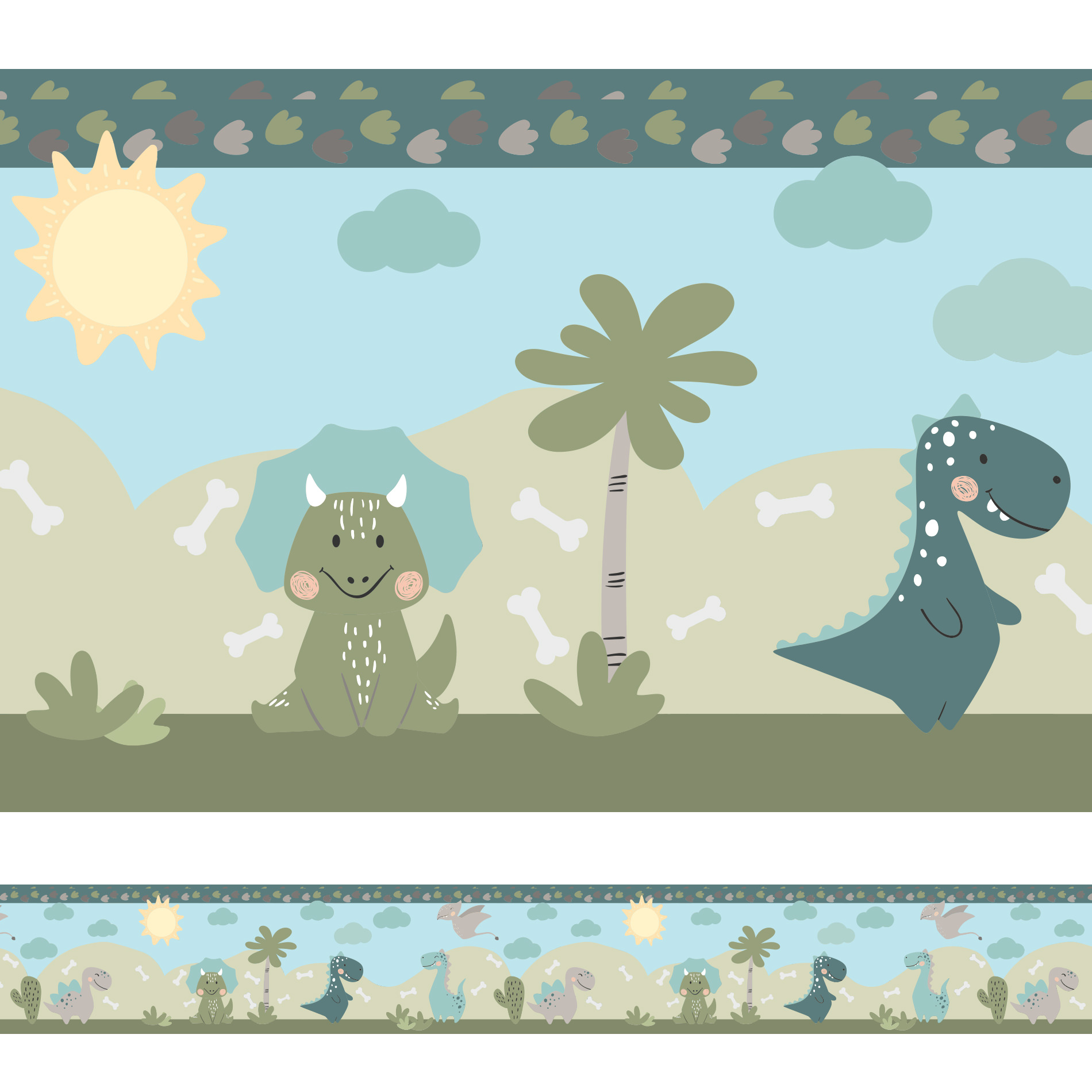 Faixa Decorativa para Quarto de Meninos Dinossauro Jurassic 3mx15cm
