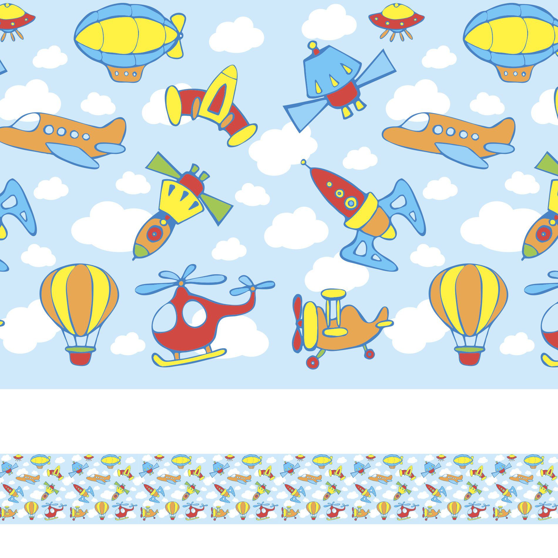 Faixa Adesiva Para Quarto Meninos Aviões e Naves 3mx15cm