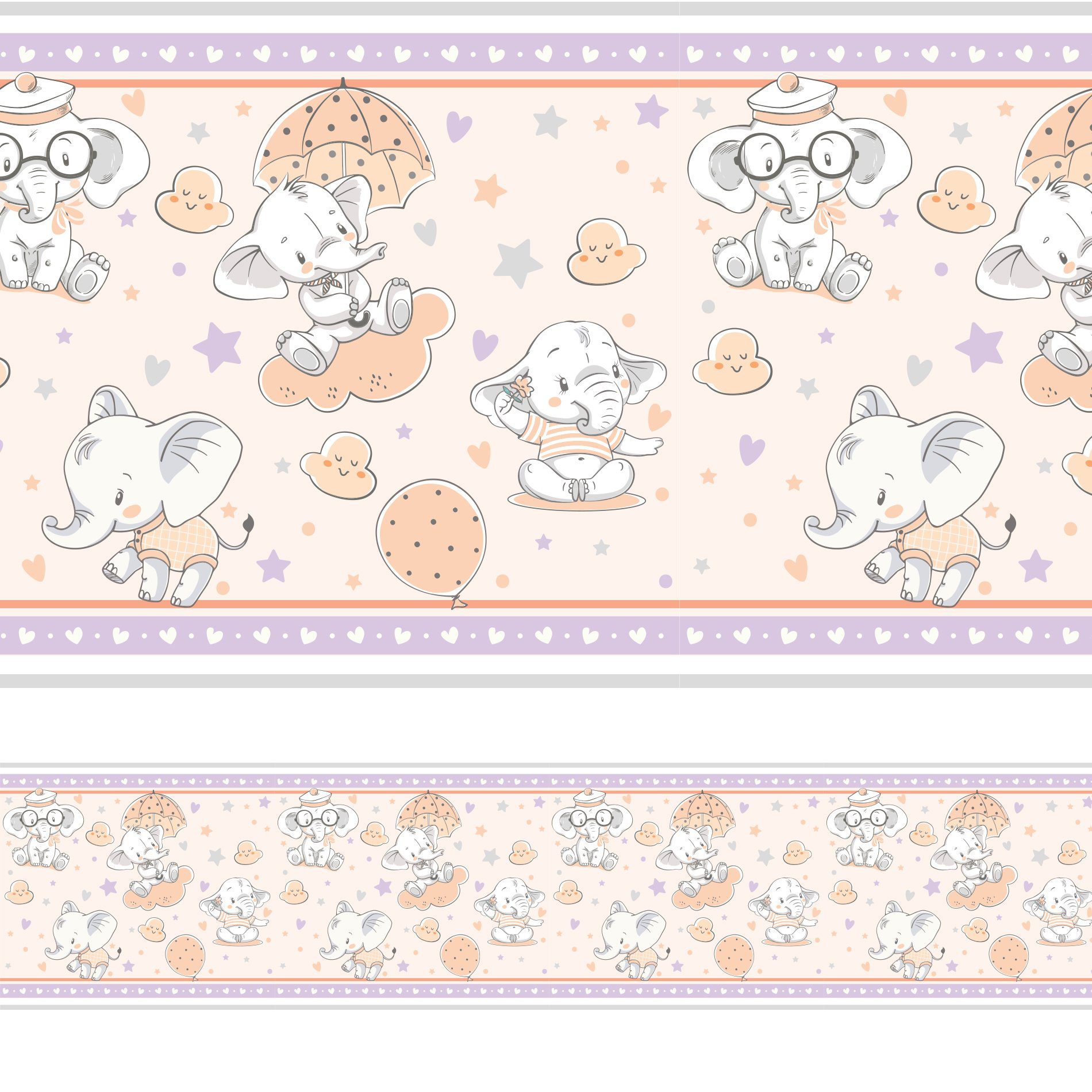 Faixa de Parede Elefante Bebê para Quarto Infantil 10cmx5m