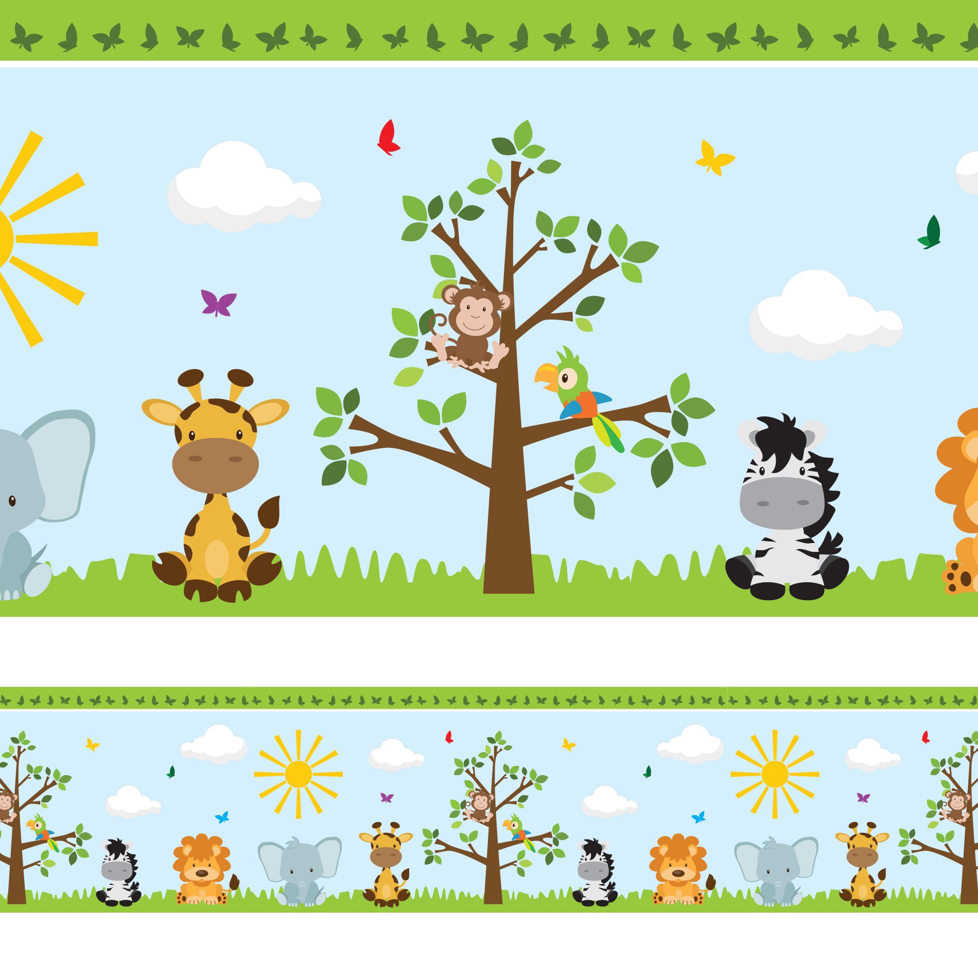 Faixa Decorativa Animais Safari Zoo Adesiva 5mx10cm